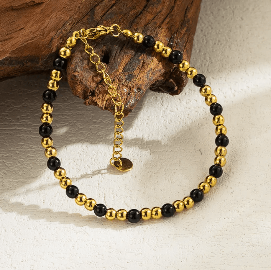 14k Gold-Filled 4MM Gold and Black Beaded Bracelet