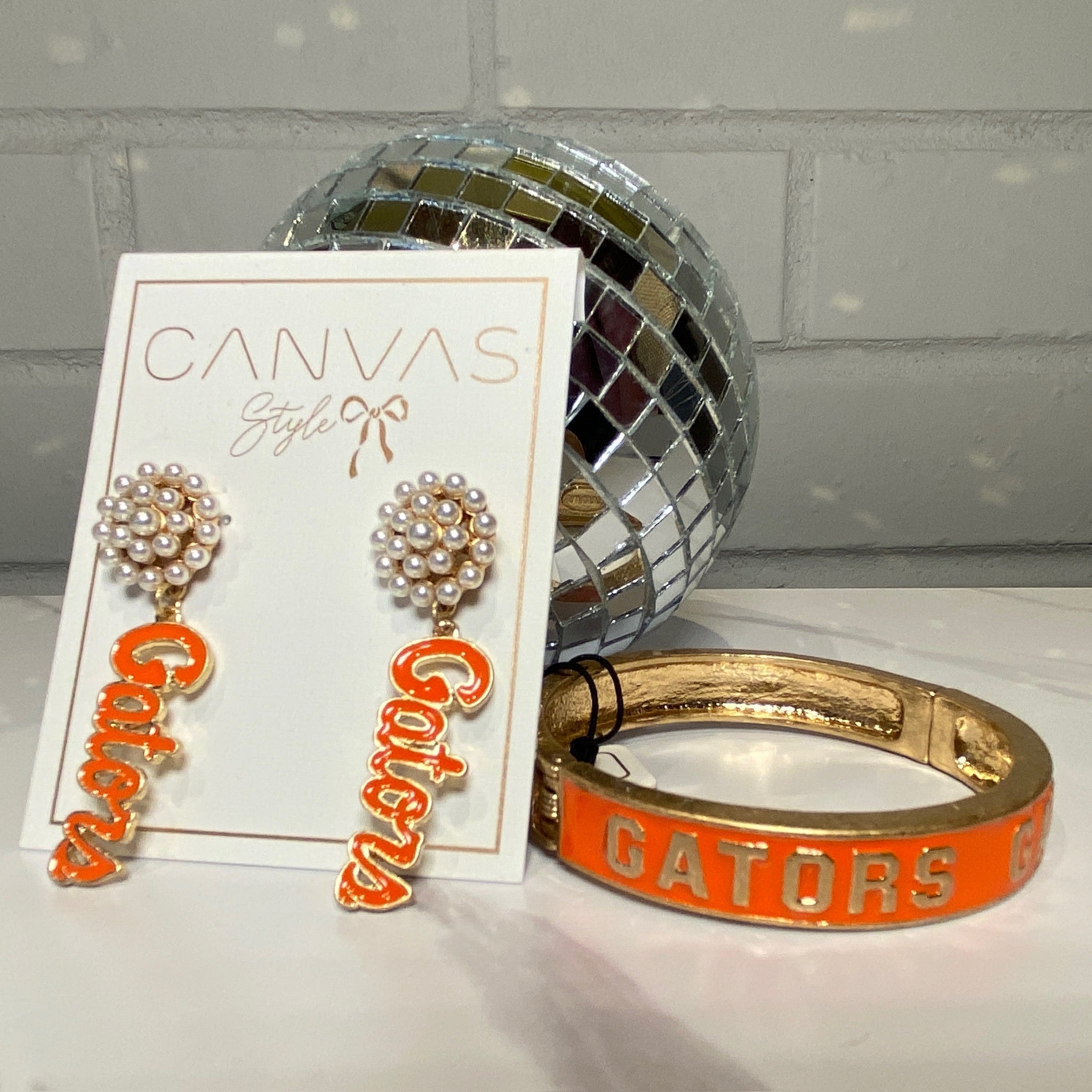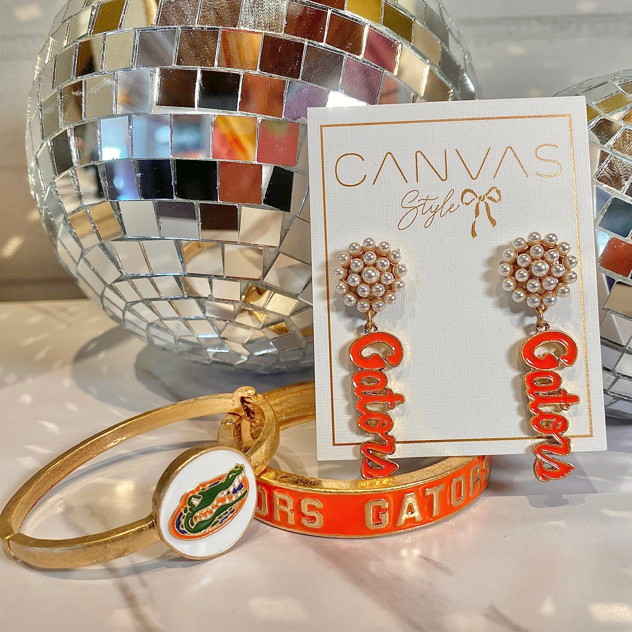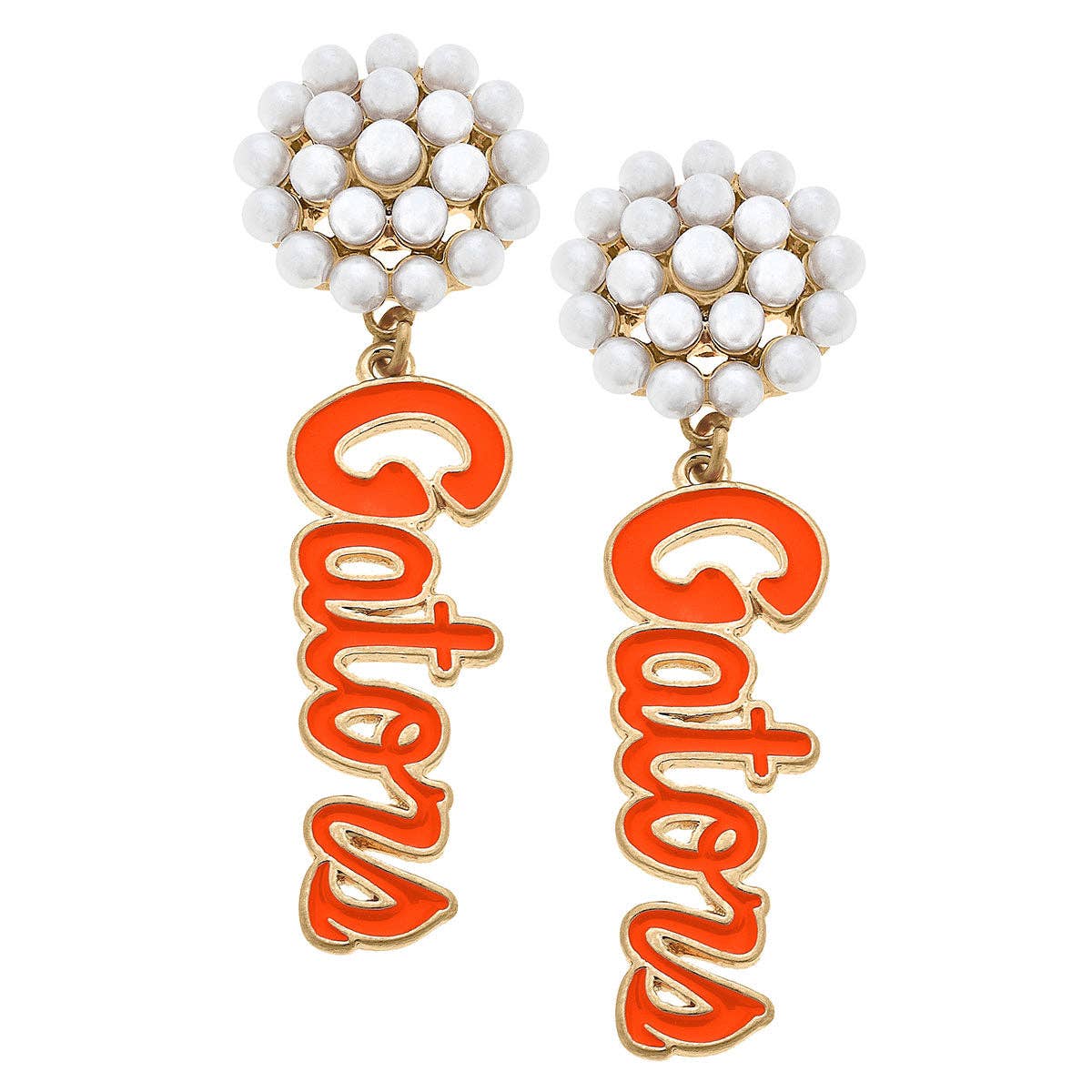 FLORIDA GATORS PEARL CLUSTER ENAMEL DROP EARRINGS IN ORANGE