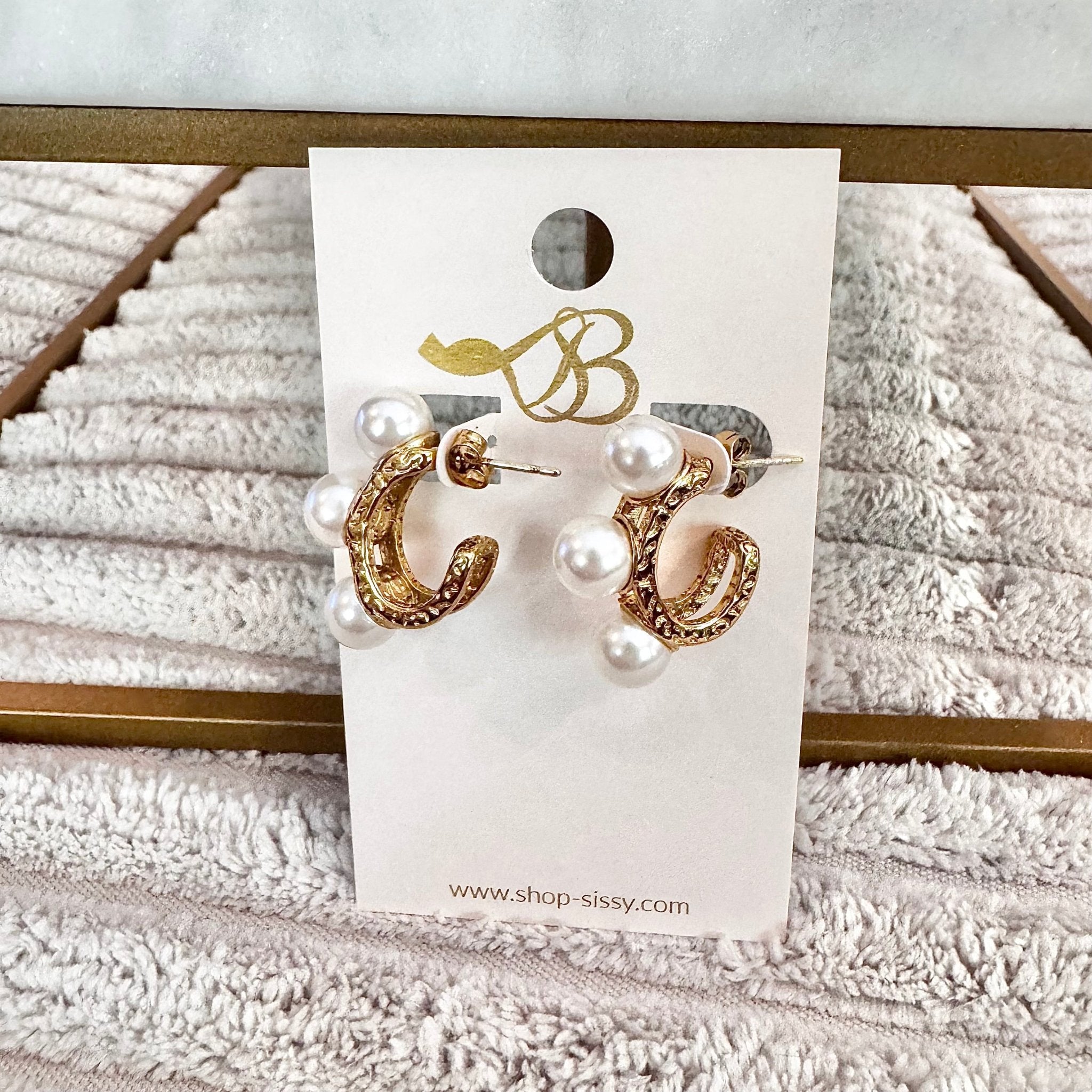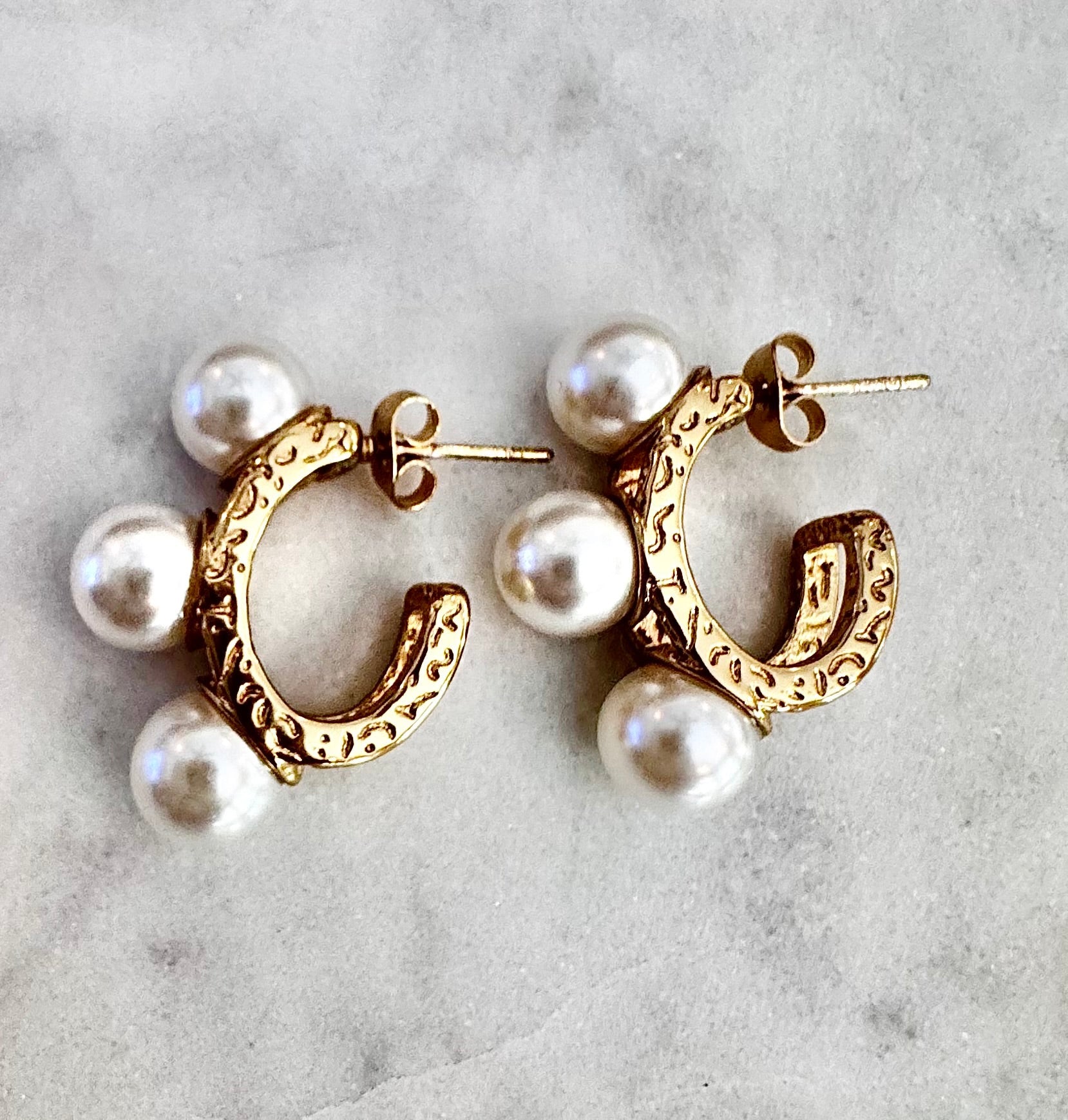 Pearl and Inset Faux Emerald 18K Gold Plated Hoops