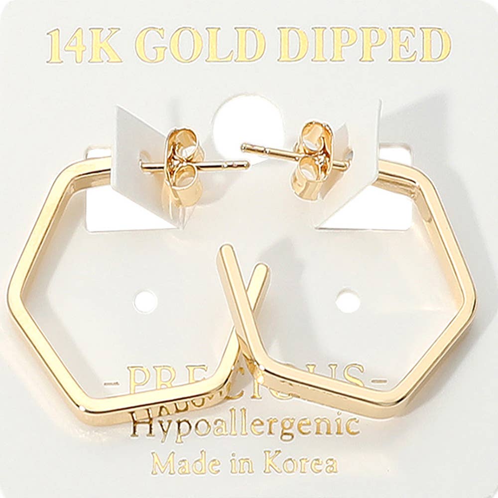 14K Gold Dipped Hypoallergenic Hexagon Hoop Earrings