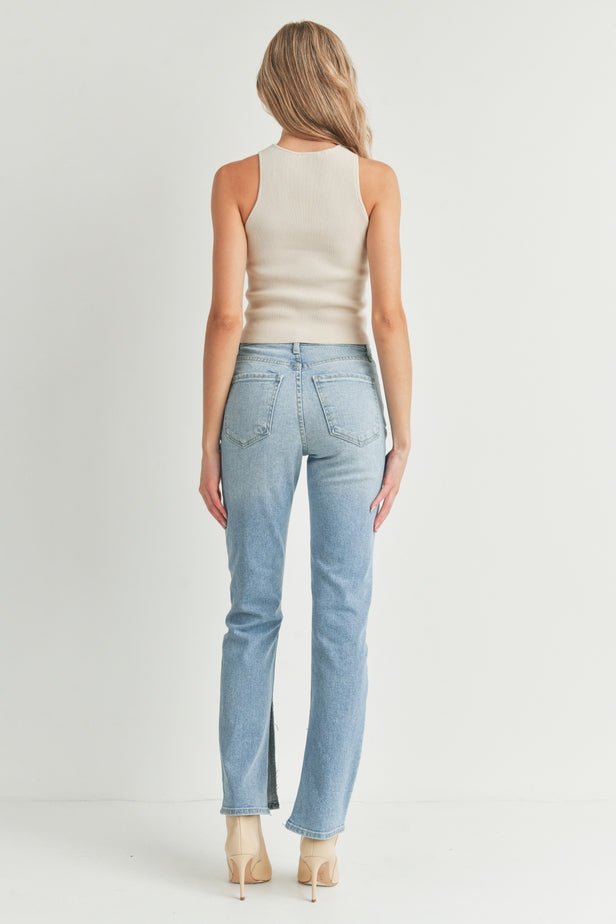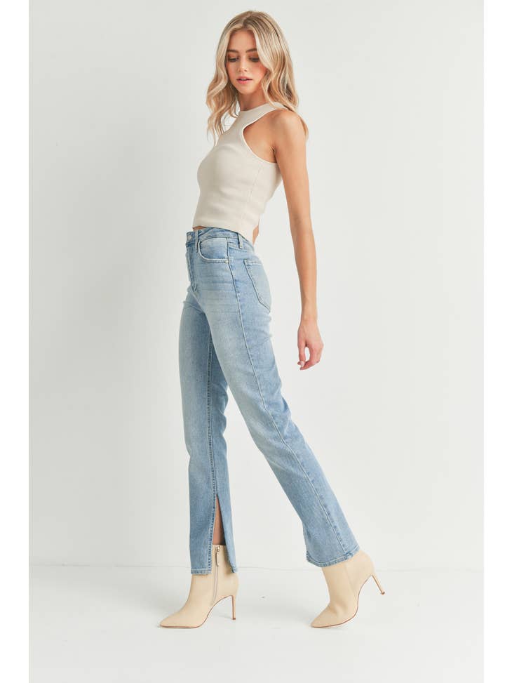 JUST BLACK DENIM LIGHT WASHED LONG-LINE SLIM SLIT STRAIGHT