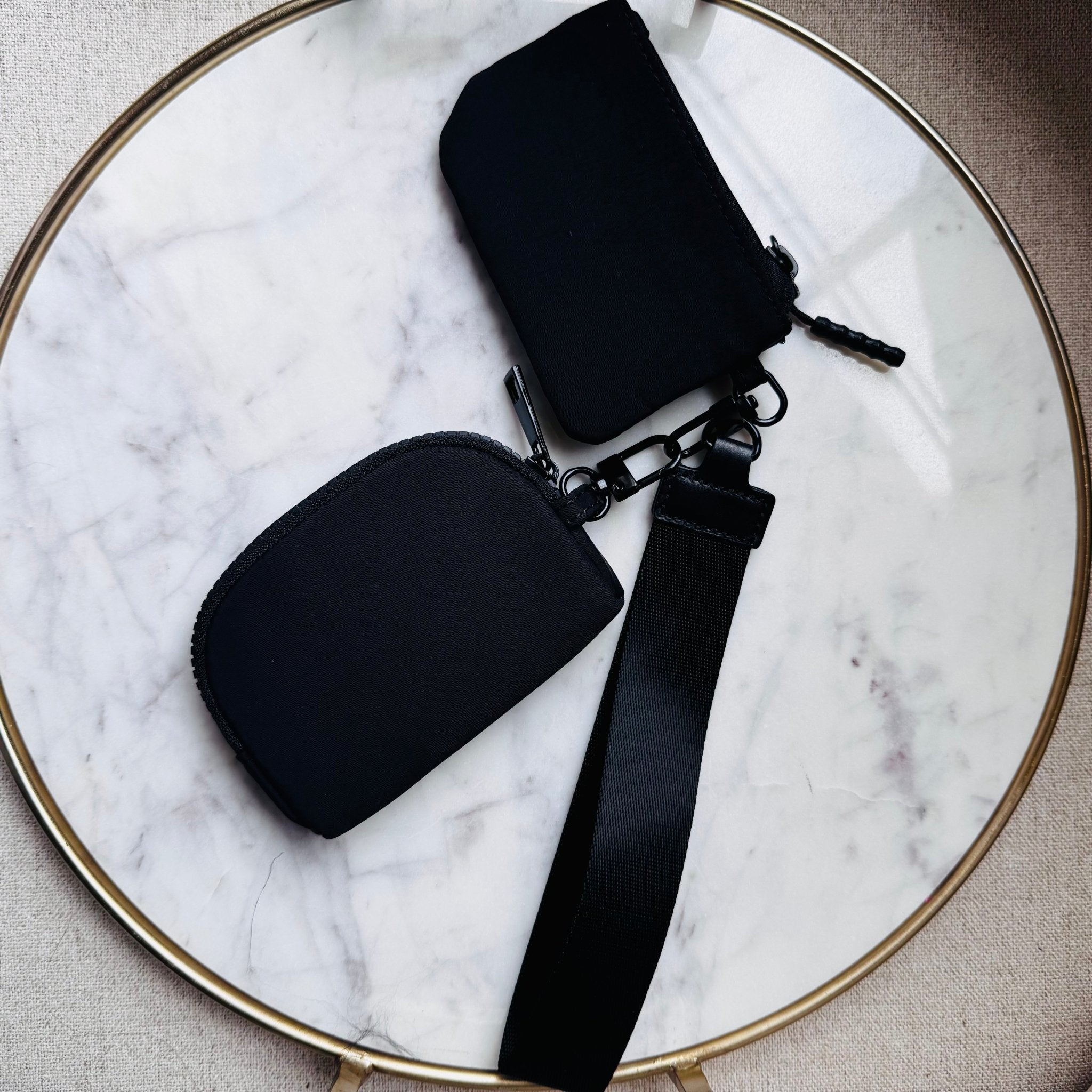 Dual Pouch Wristlet Wallet Wristlet and Keychain| Black