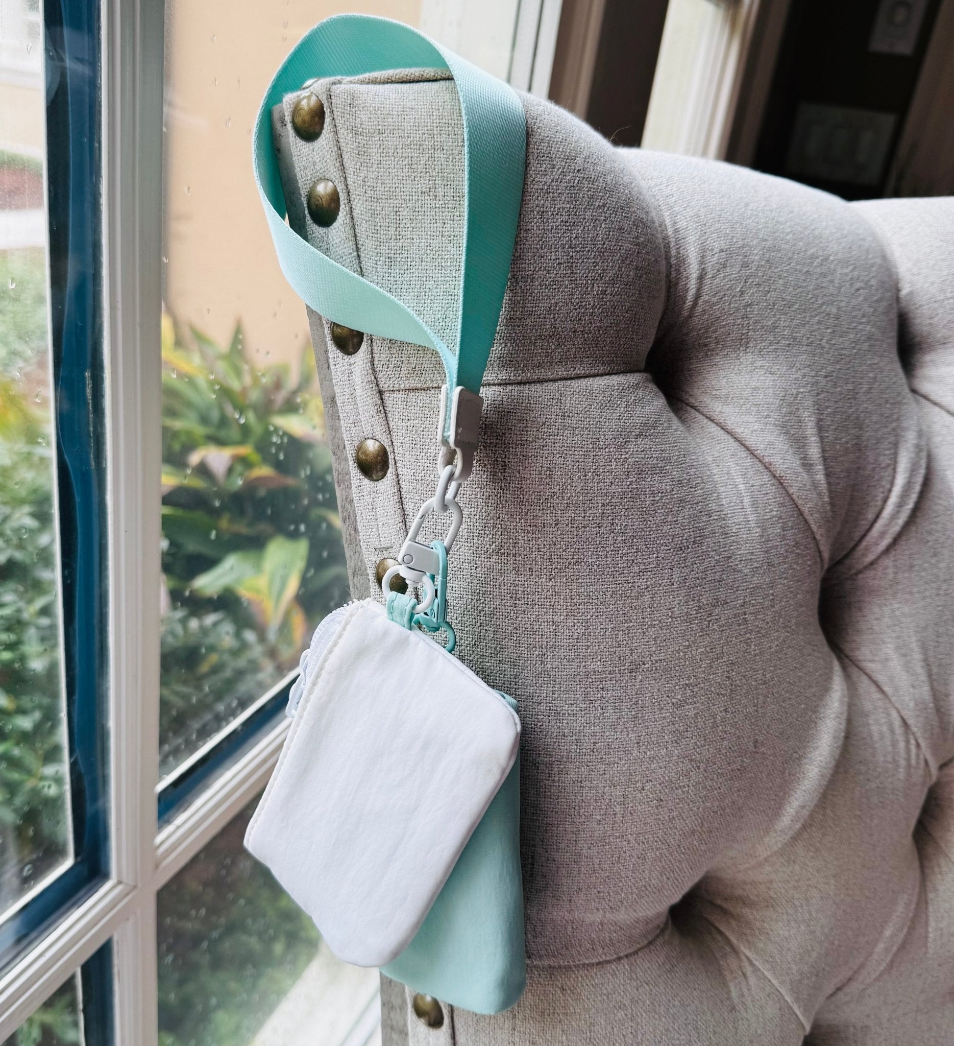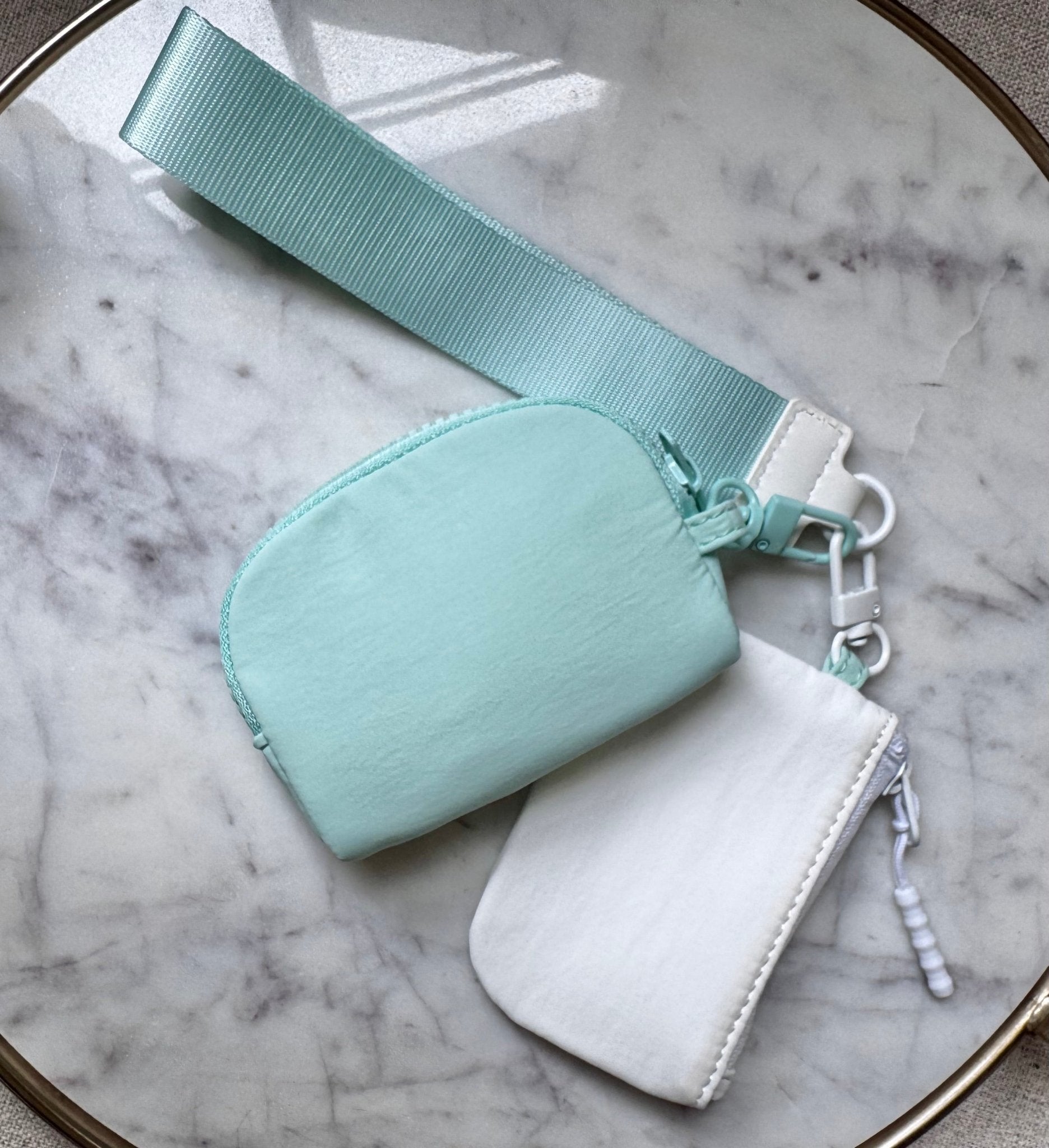 Dual Pouch Wristlet Wallet Wristlet and Keychain| Mint and White