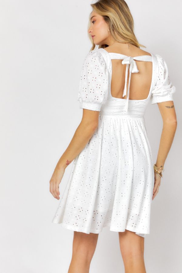 PLUS White EYELET LACE MIX MEDIA MINI DRESS