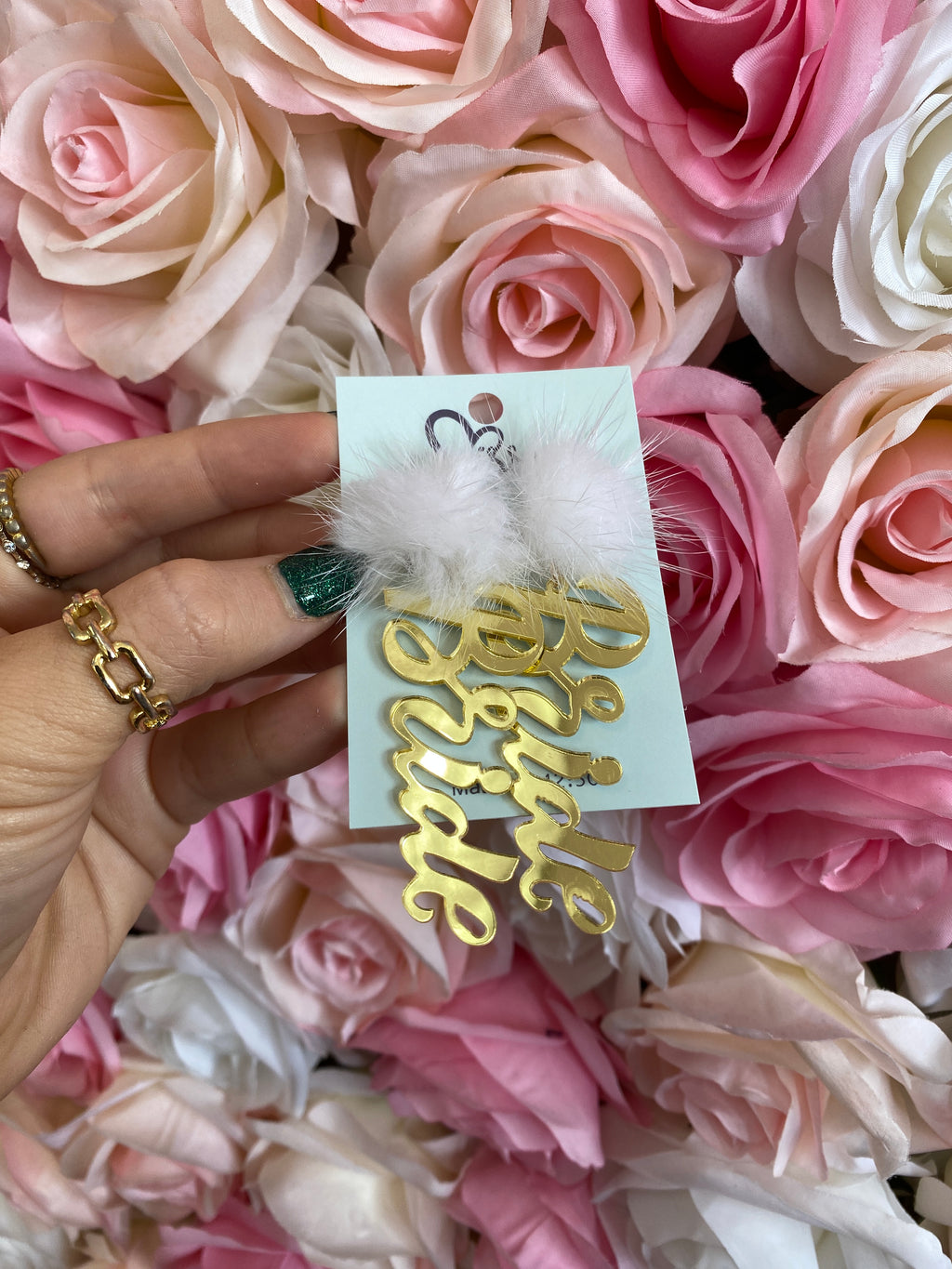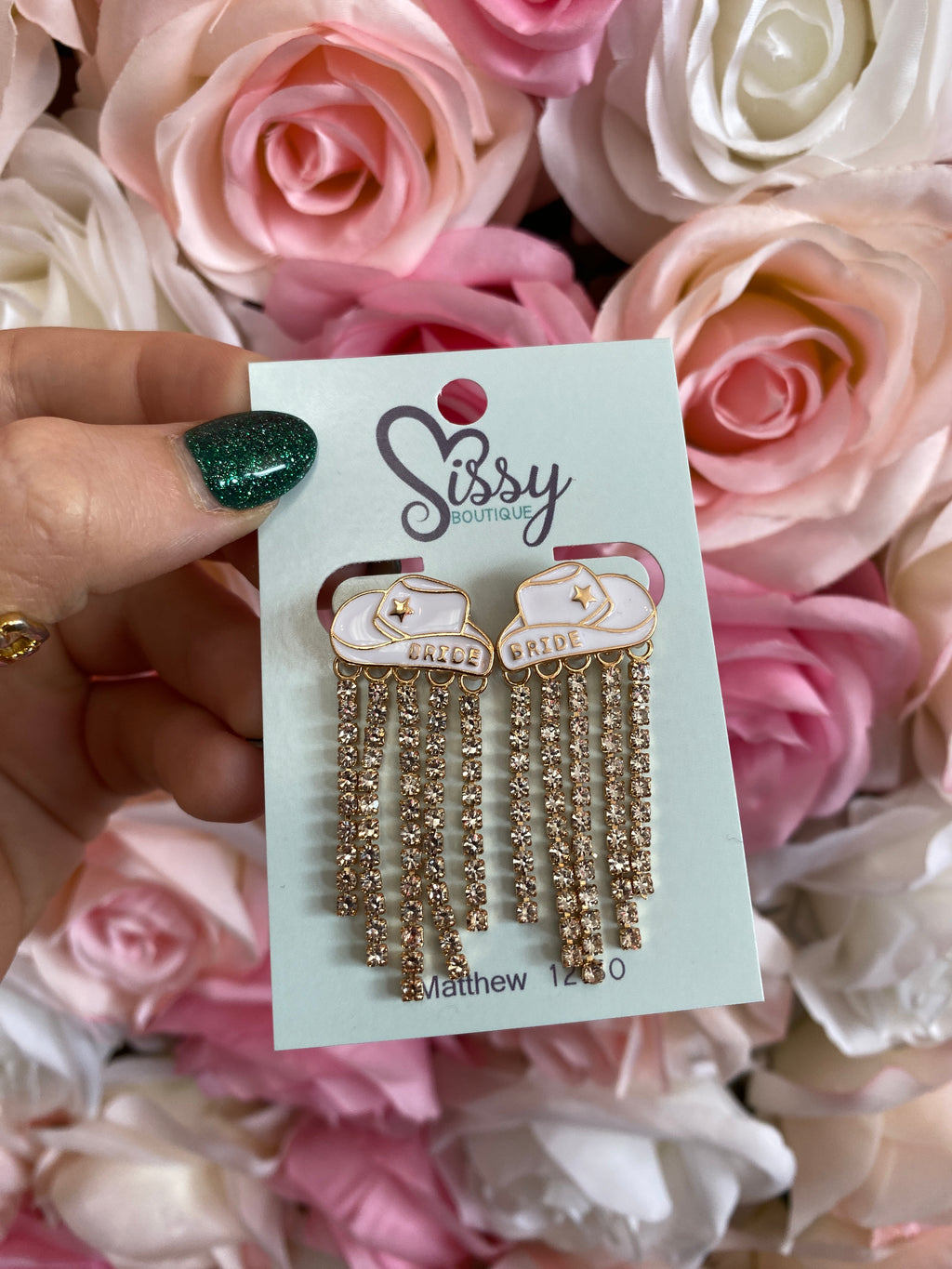 Bride Cowboy Hat Gold Iridescent Crystal Charm Dangle Earrings