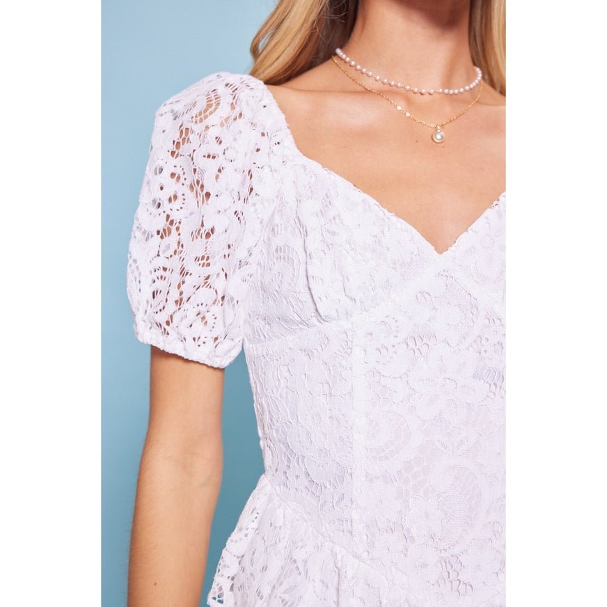 WHITE SWEETHEART NECK LACE DRESS WITH RUFFLED SKIRT