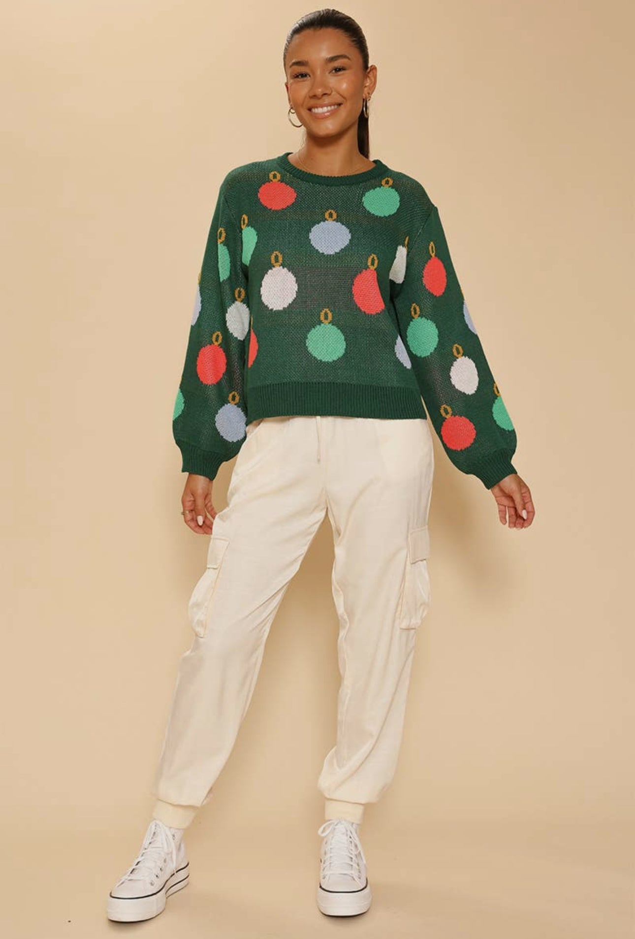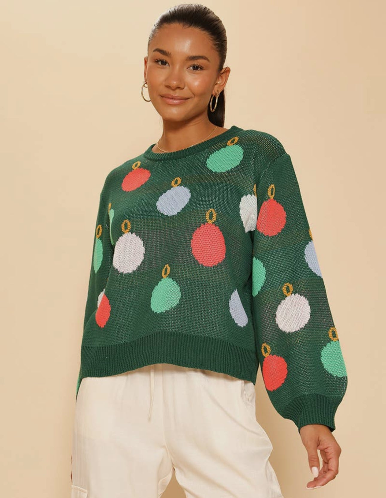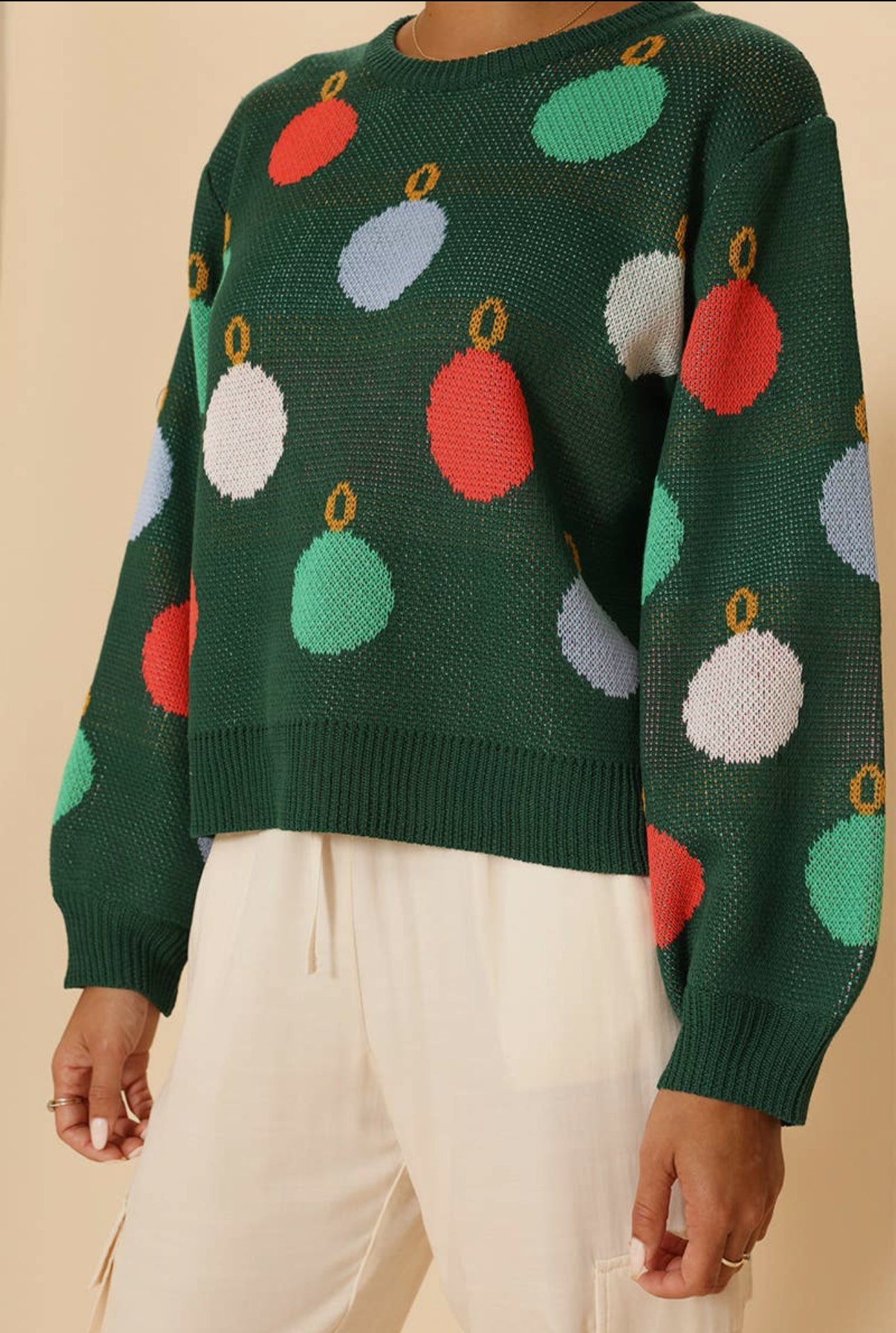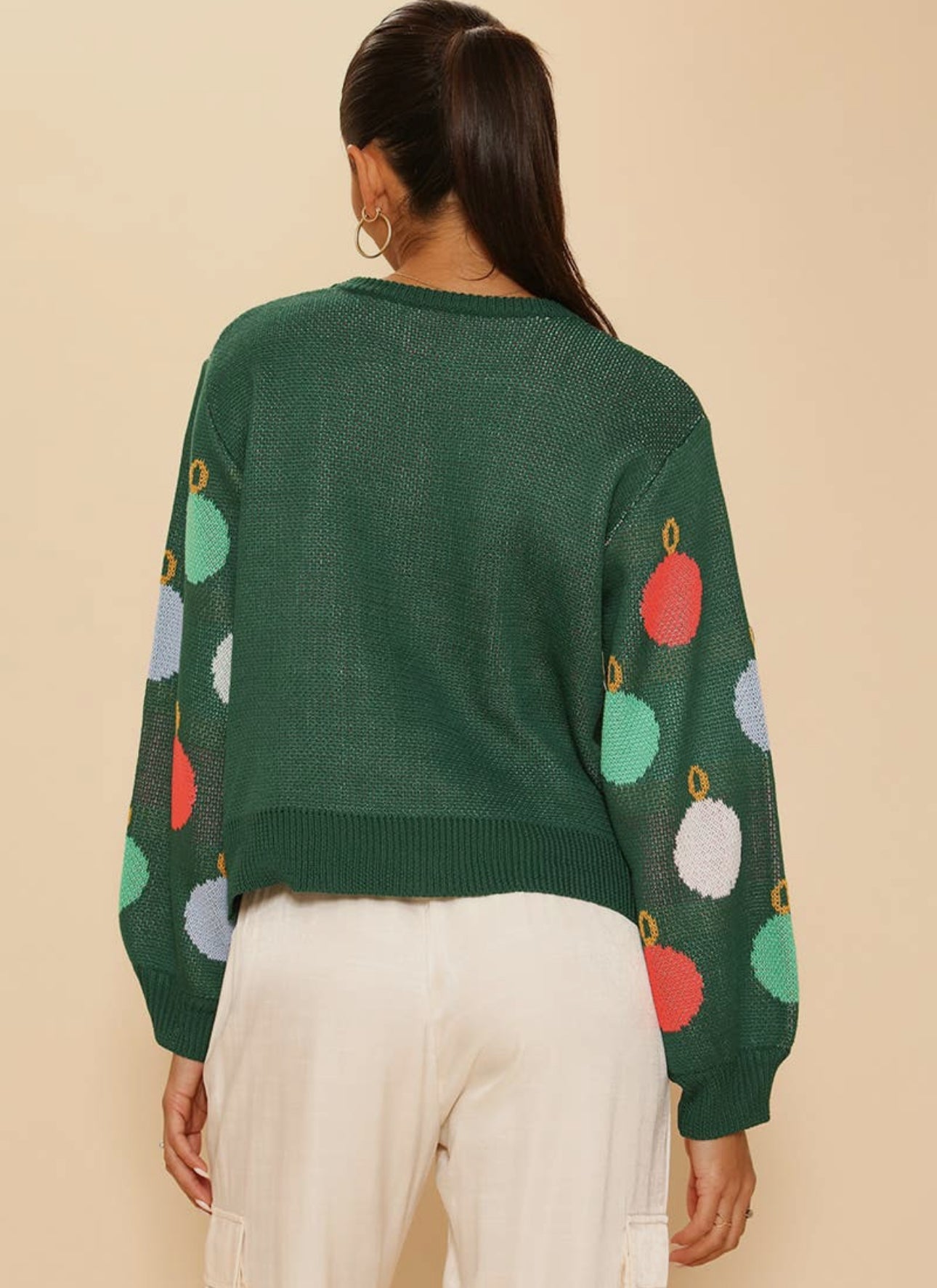 GREEN, RED AND WHITE CHRISTMAS ORNAMENT SWEATER