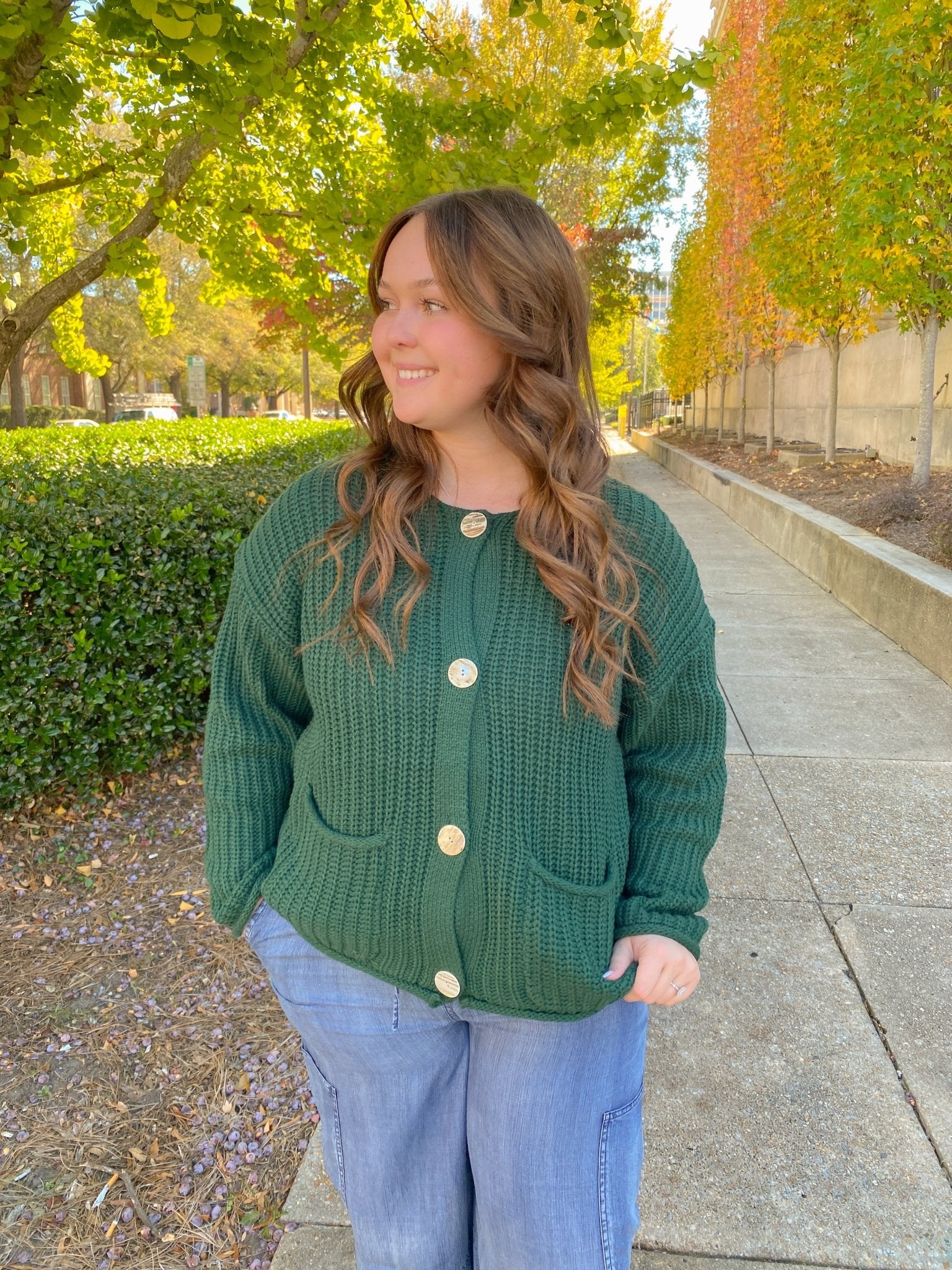 Knitted long sleeve cardigan with big shell button at the front. Total Length: 22 1/2" Content: 60% Cotton, 40% Acrylic