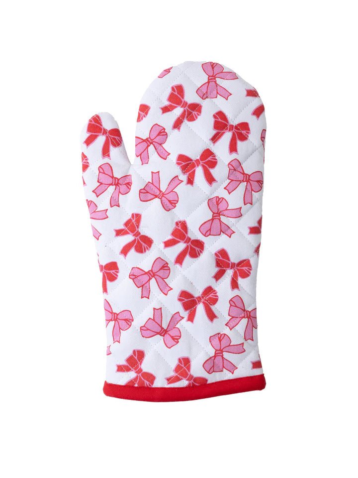 Get into the festive spirit with the Bows Oven Mitt. Featuring whimsical bow design, this oven mitt adds a sweet holiday vibe to your kitchen.