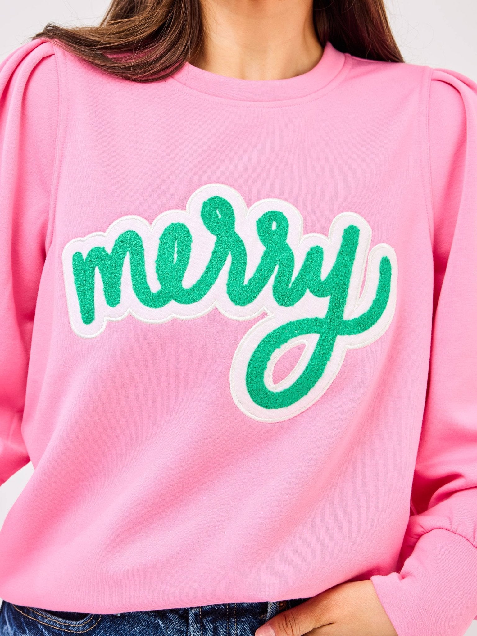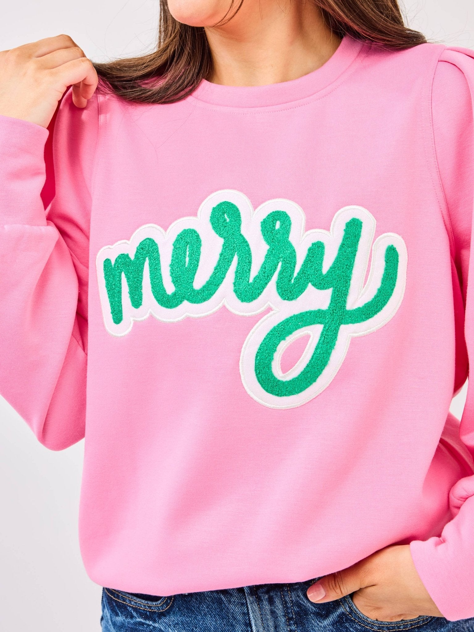 Mary Square Pink and Kelly Green Merry Sweatshirt