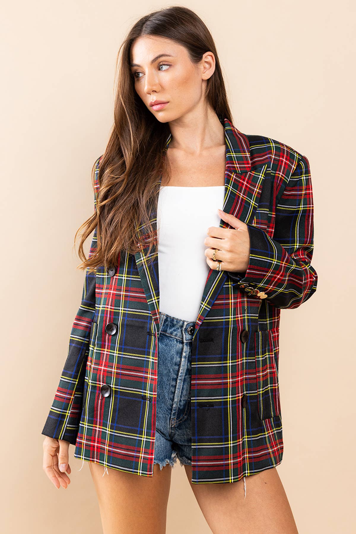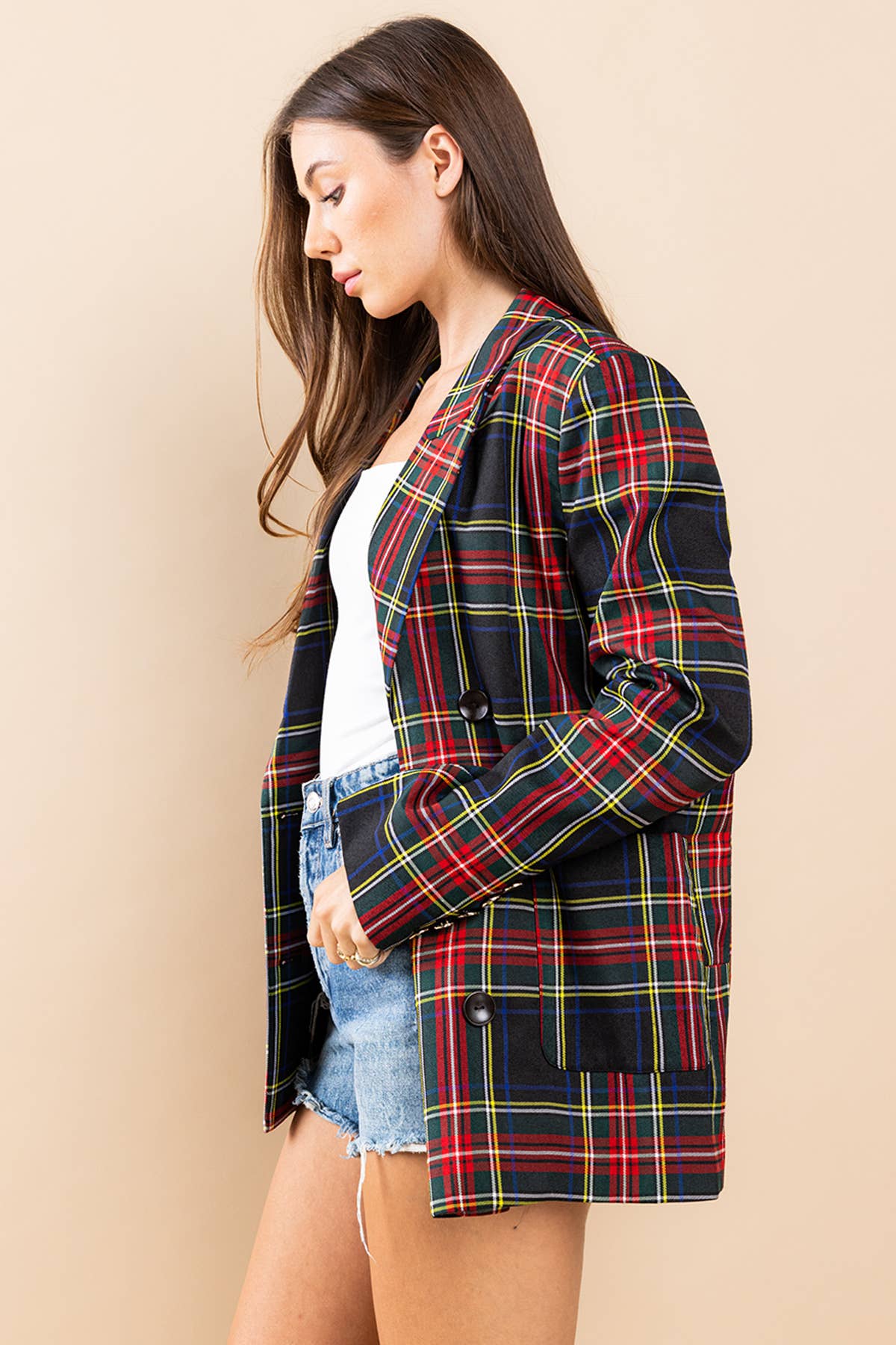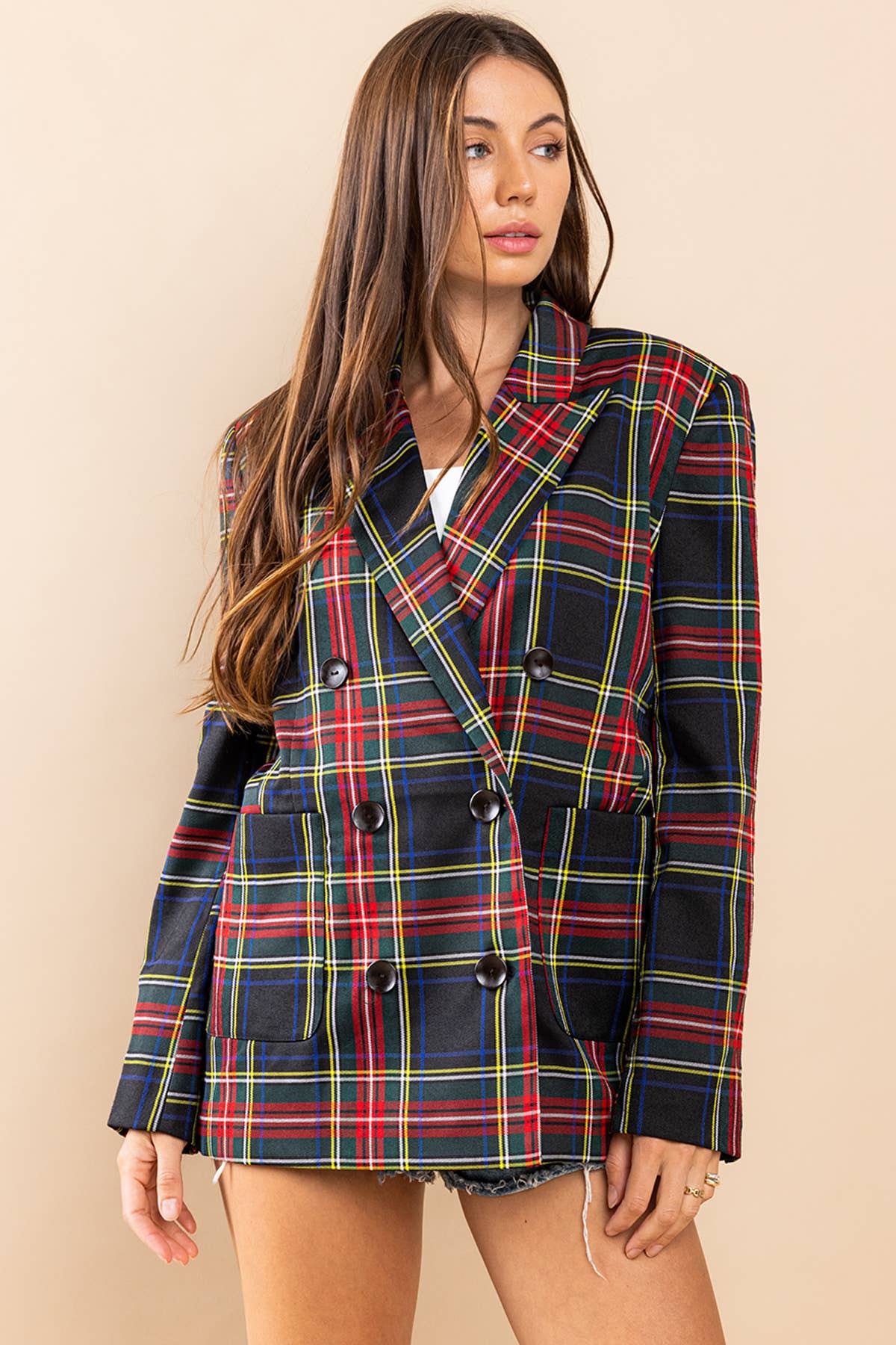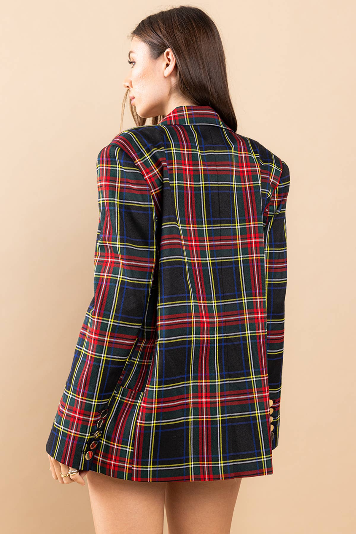 TARTAN PLAID DOUBLE BREASTED BLAZER