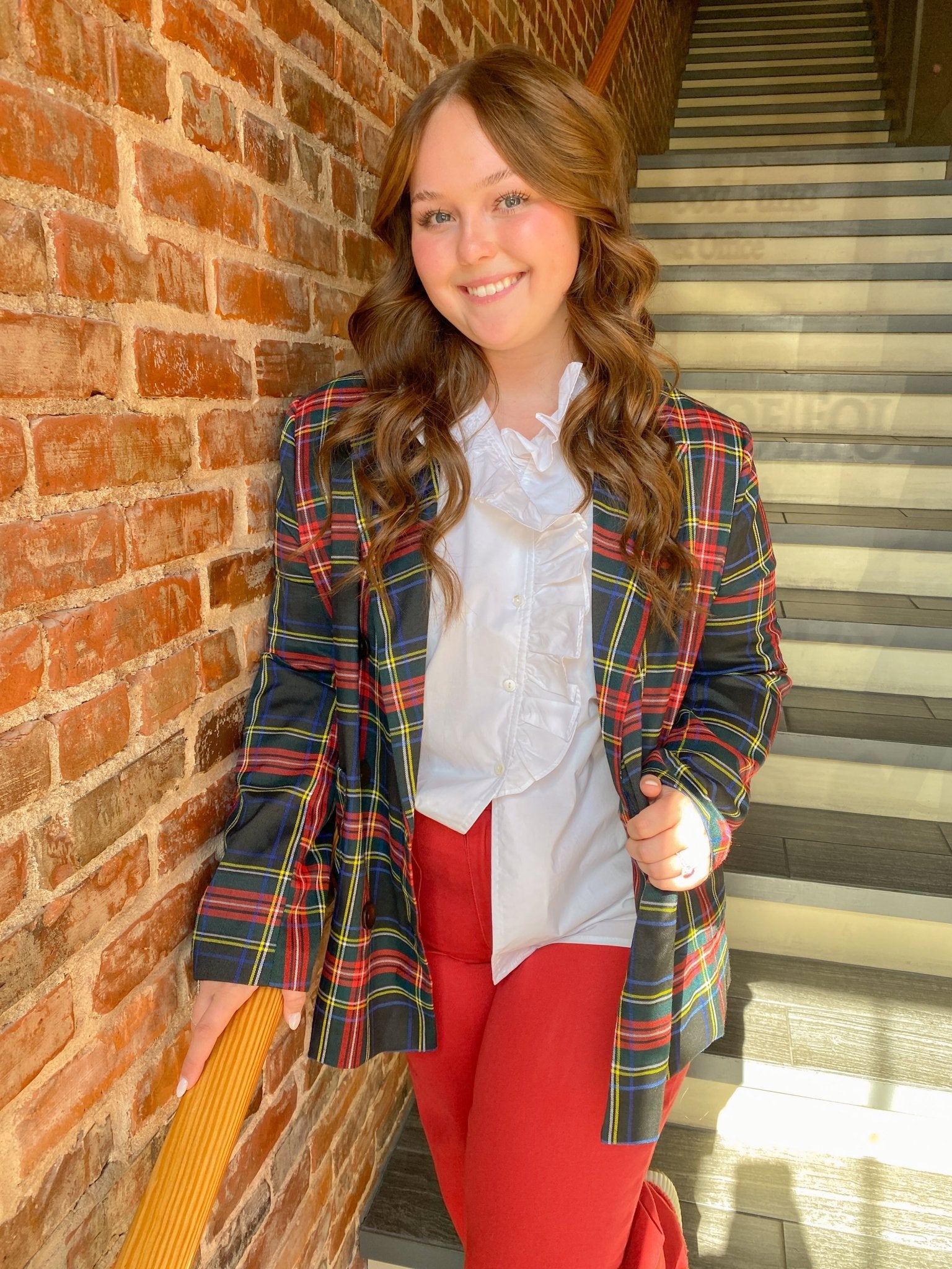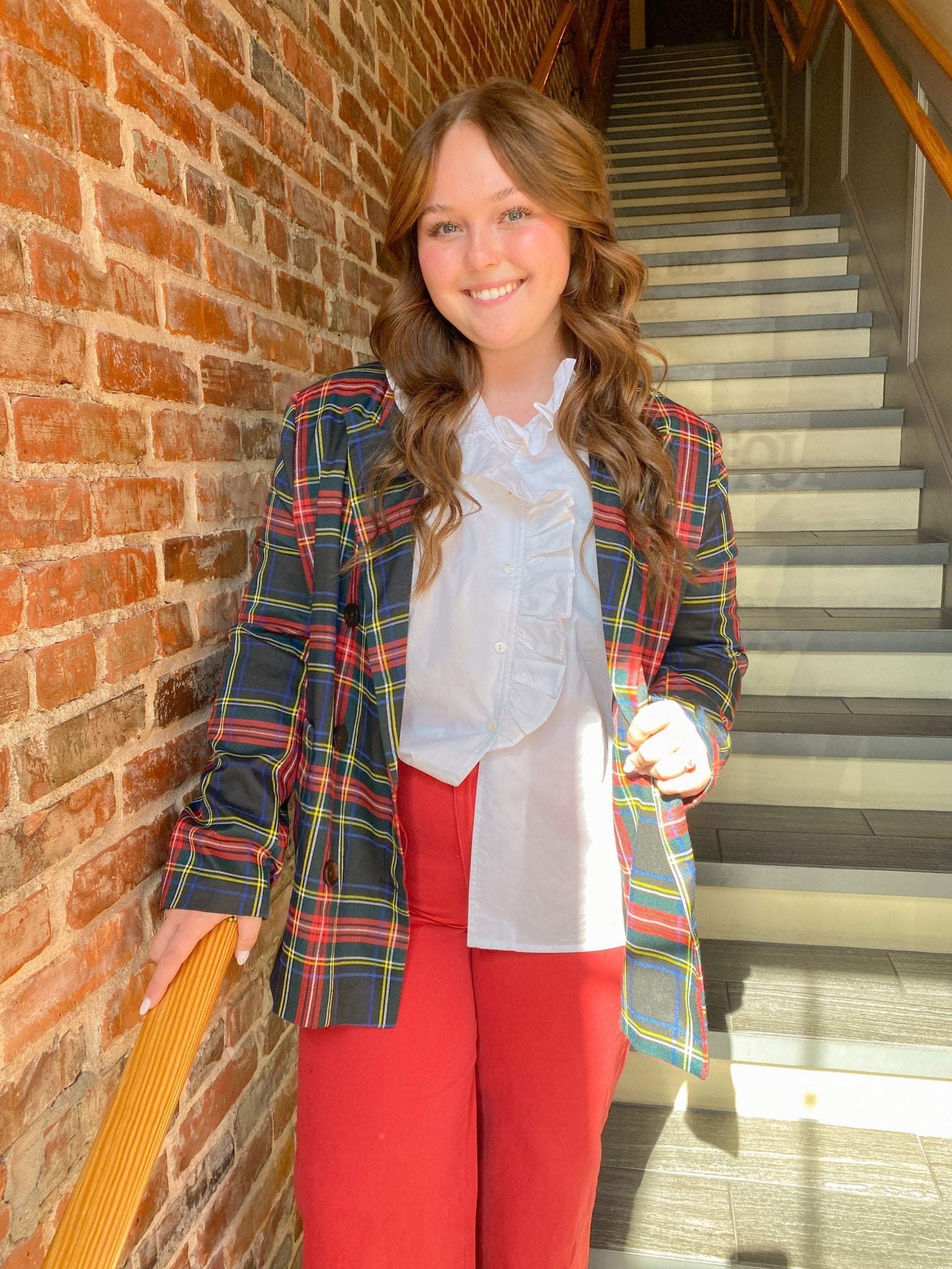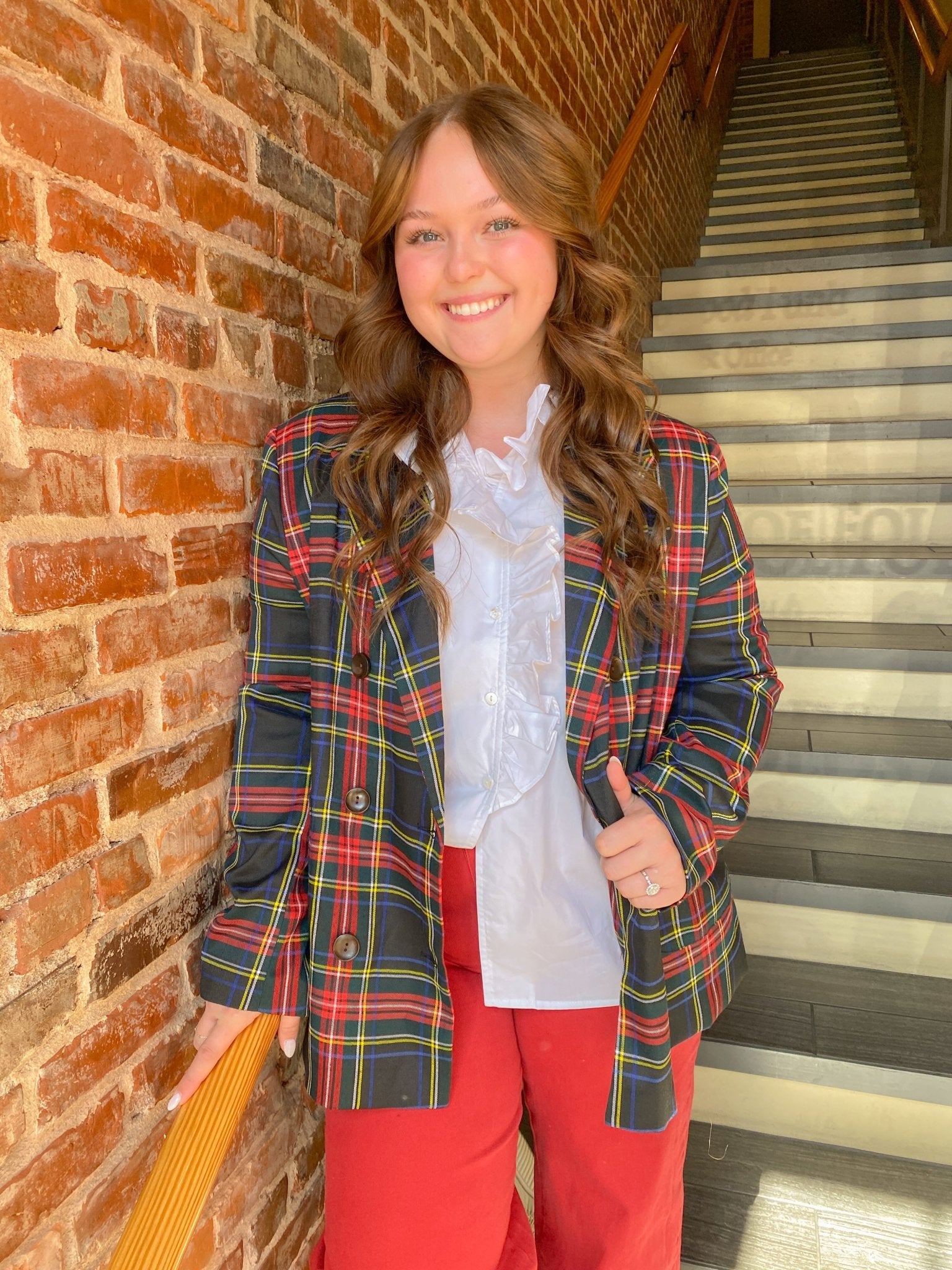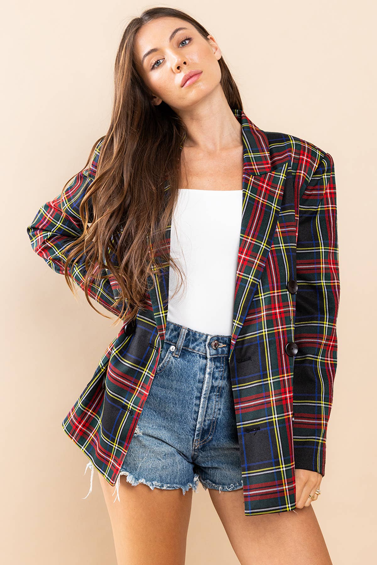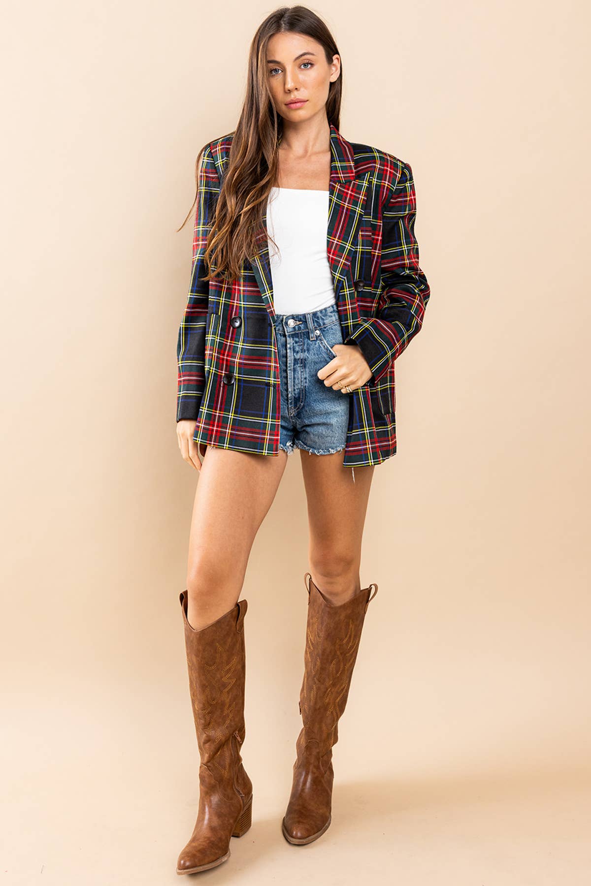 TARTAN PLAID DOUBLE BREASTED BLAZER