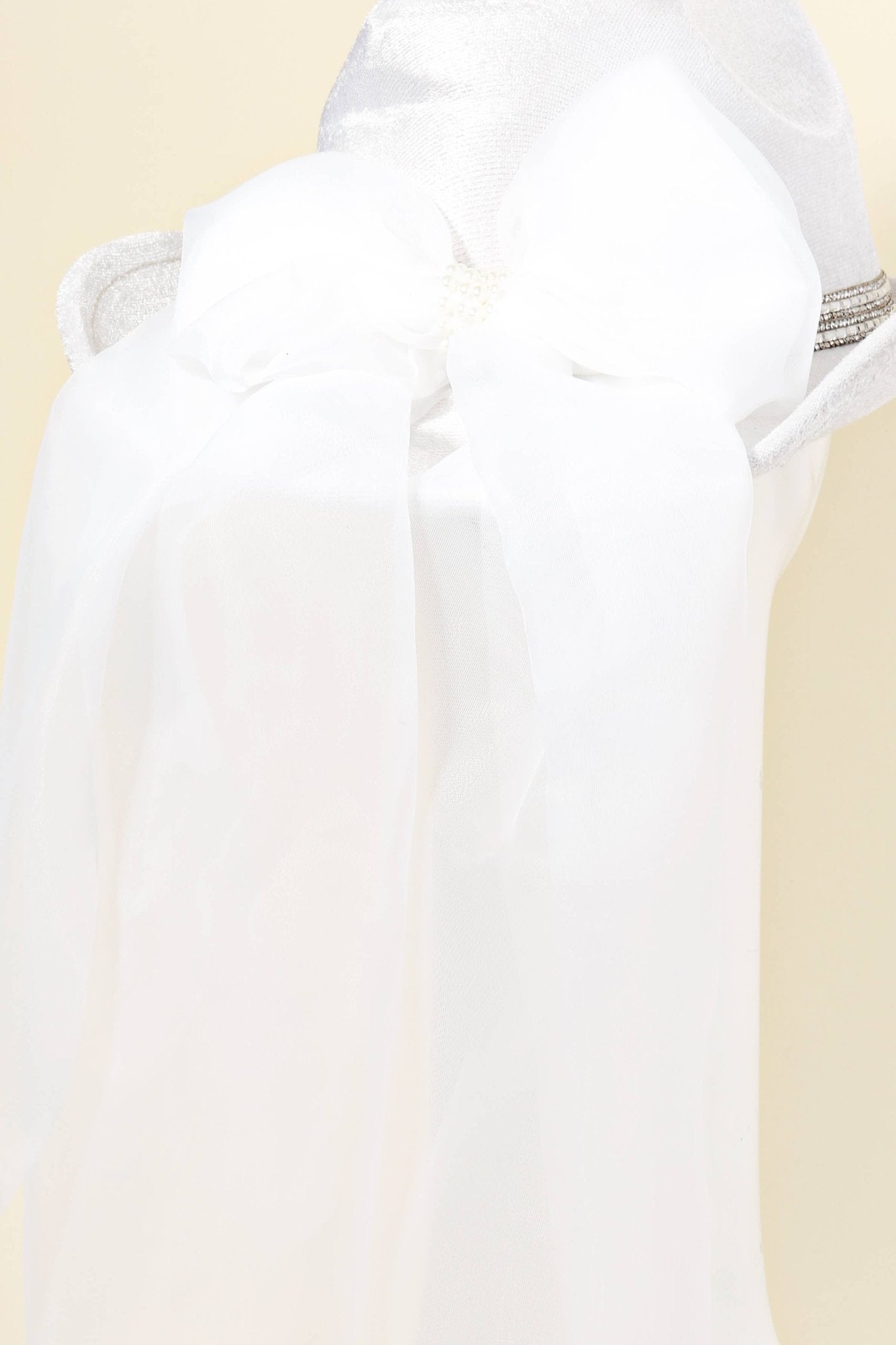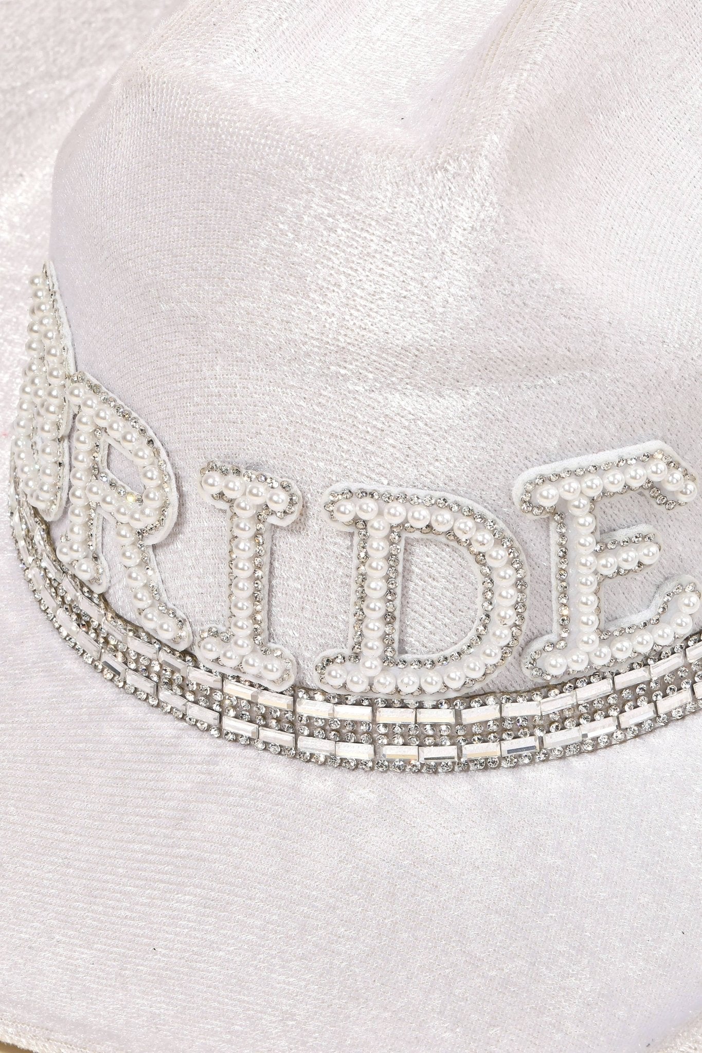 The perfect way to complete any outfit, this cowboy hat presents a striking pearl rhinestone stud ribbon bride design. A chic and sophisticated cowboy hat that's perfect for dressing up or down. Available in IV. This item is sold in packs of 1.