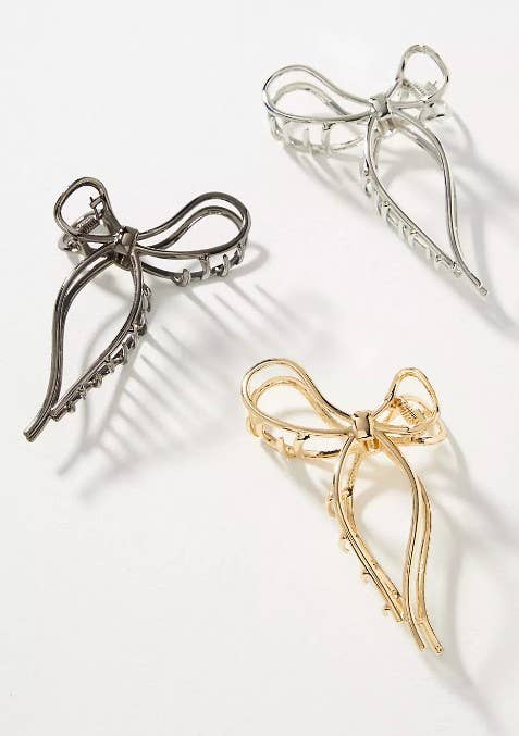 Introducing our Bow Hair Claw Clips, a timeless accessory that effortlessly combines sophistication with practicality.