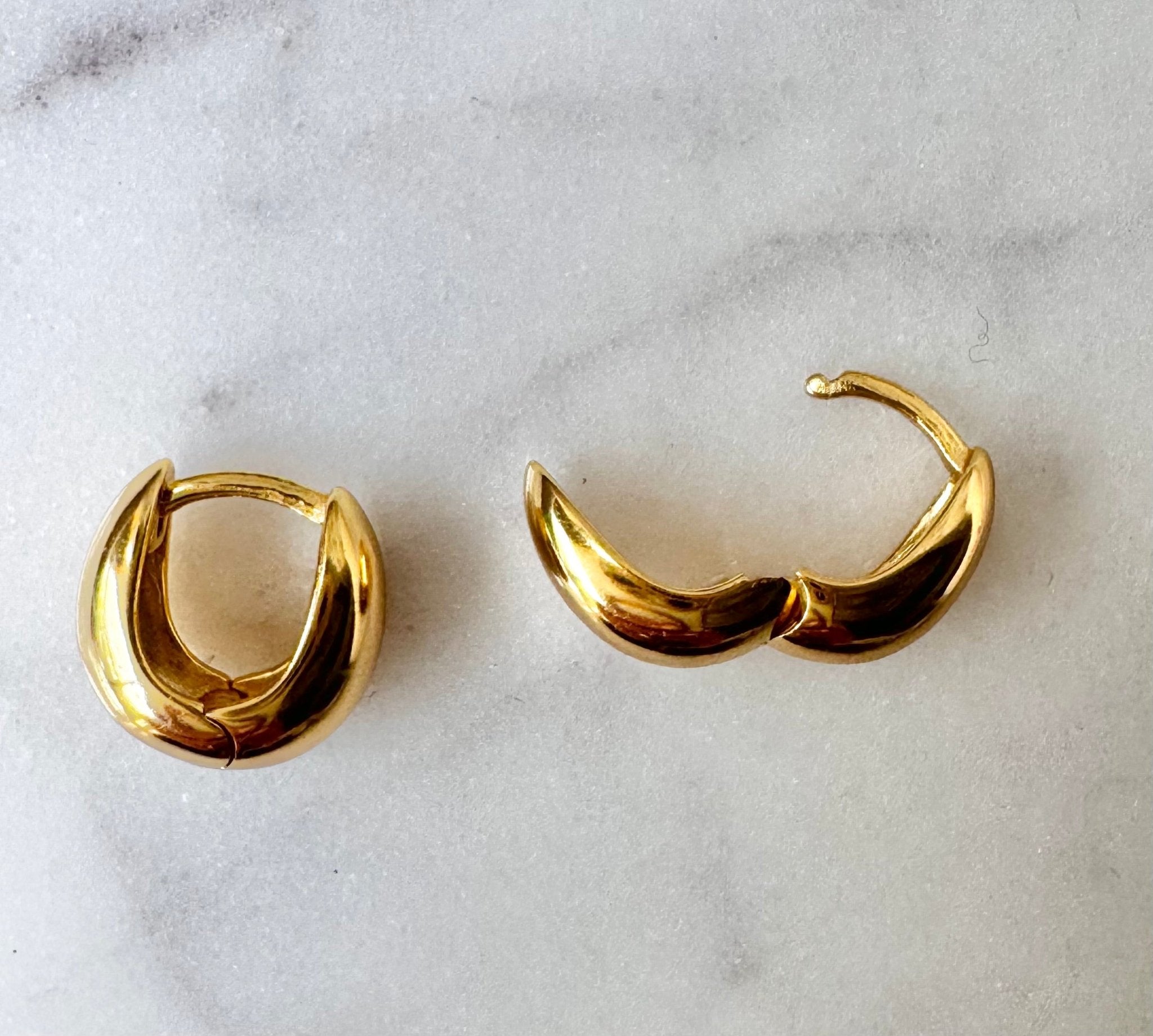 Small 14K Gold Plated Hinged Thick Hoop Earrings
