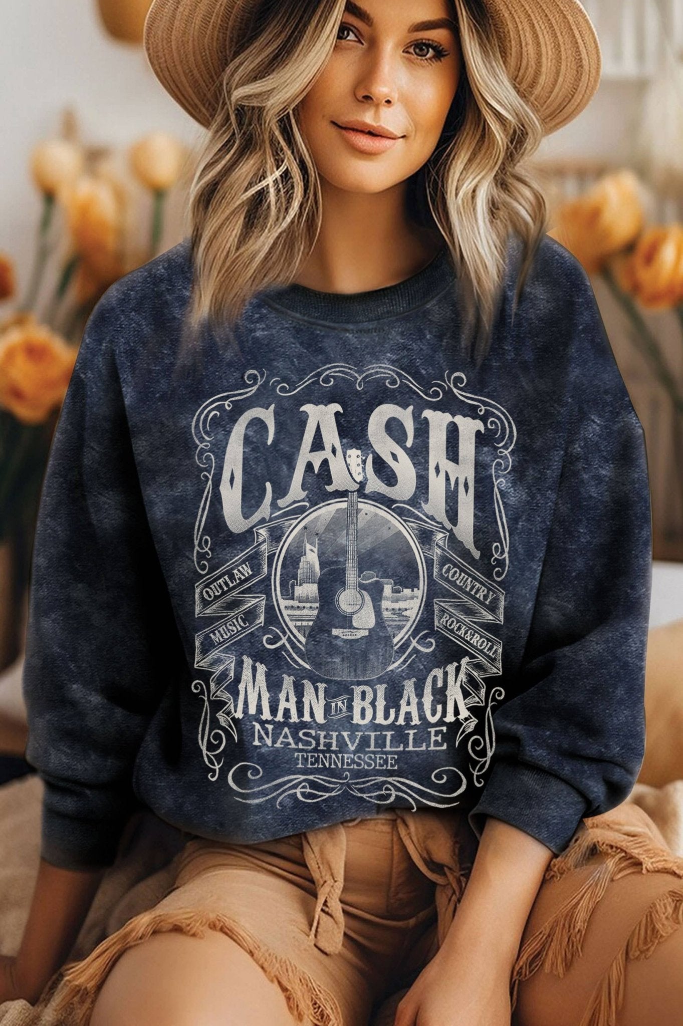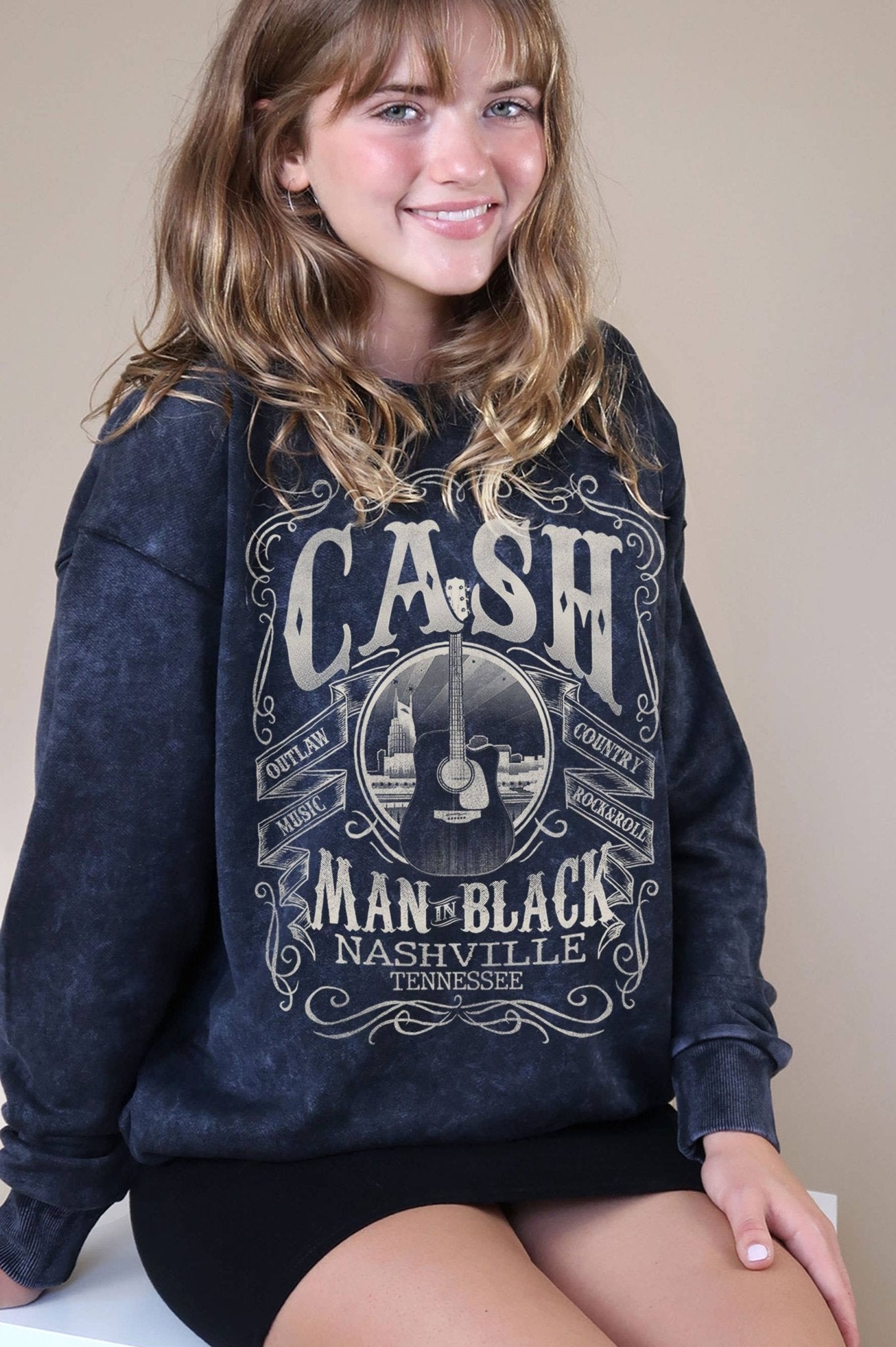 CASH MAN IN BLACK MINERAL GRAPHIC BRUSHED SWEATSHIRTS