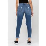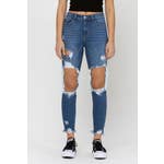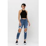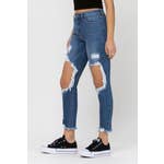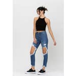 MEDIUM DENIM HIGH-RISE DISTRESSED WAISTED MOM JEANS