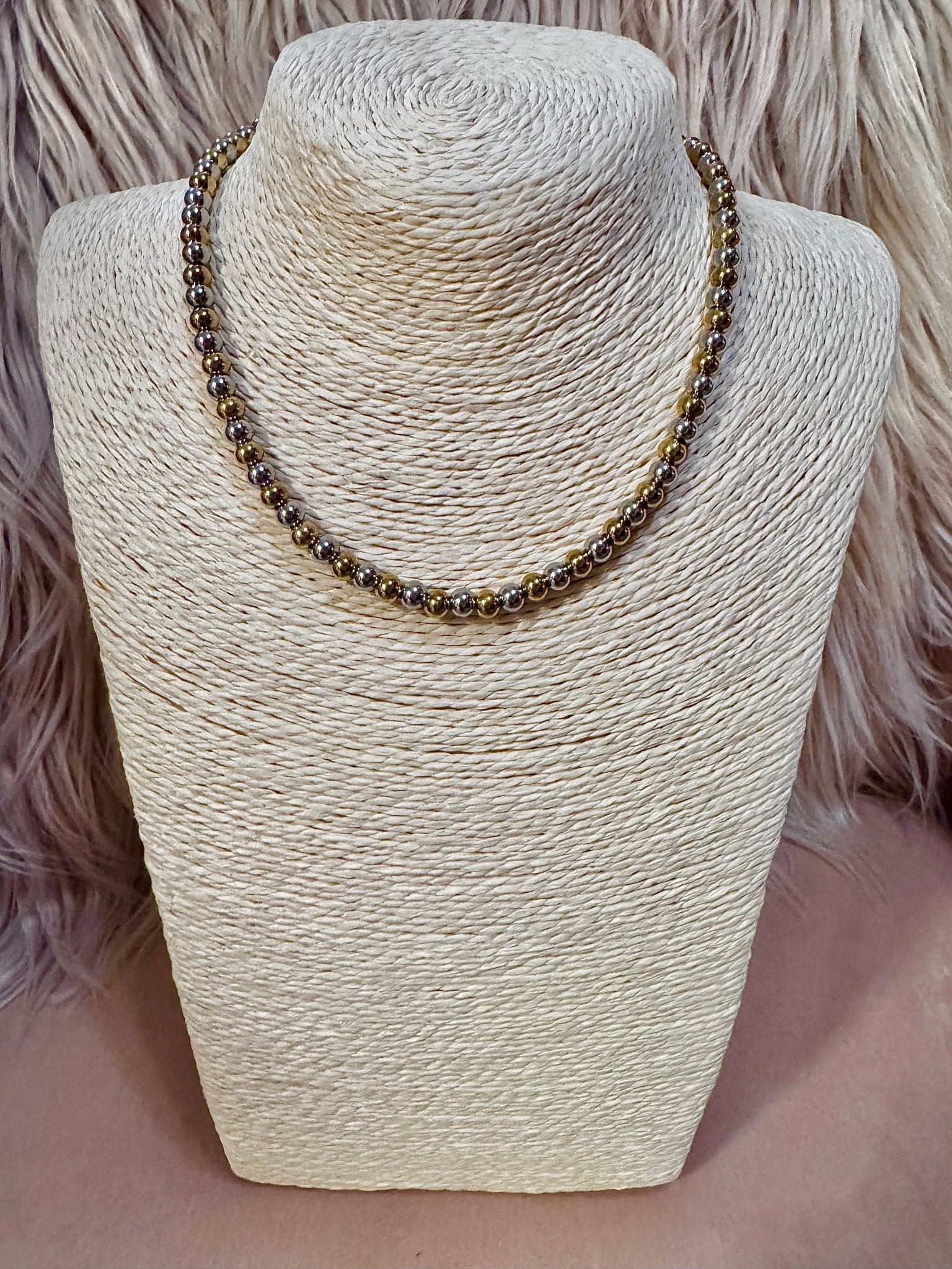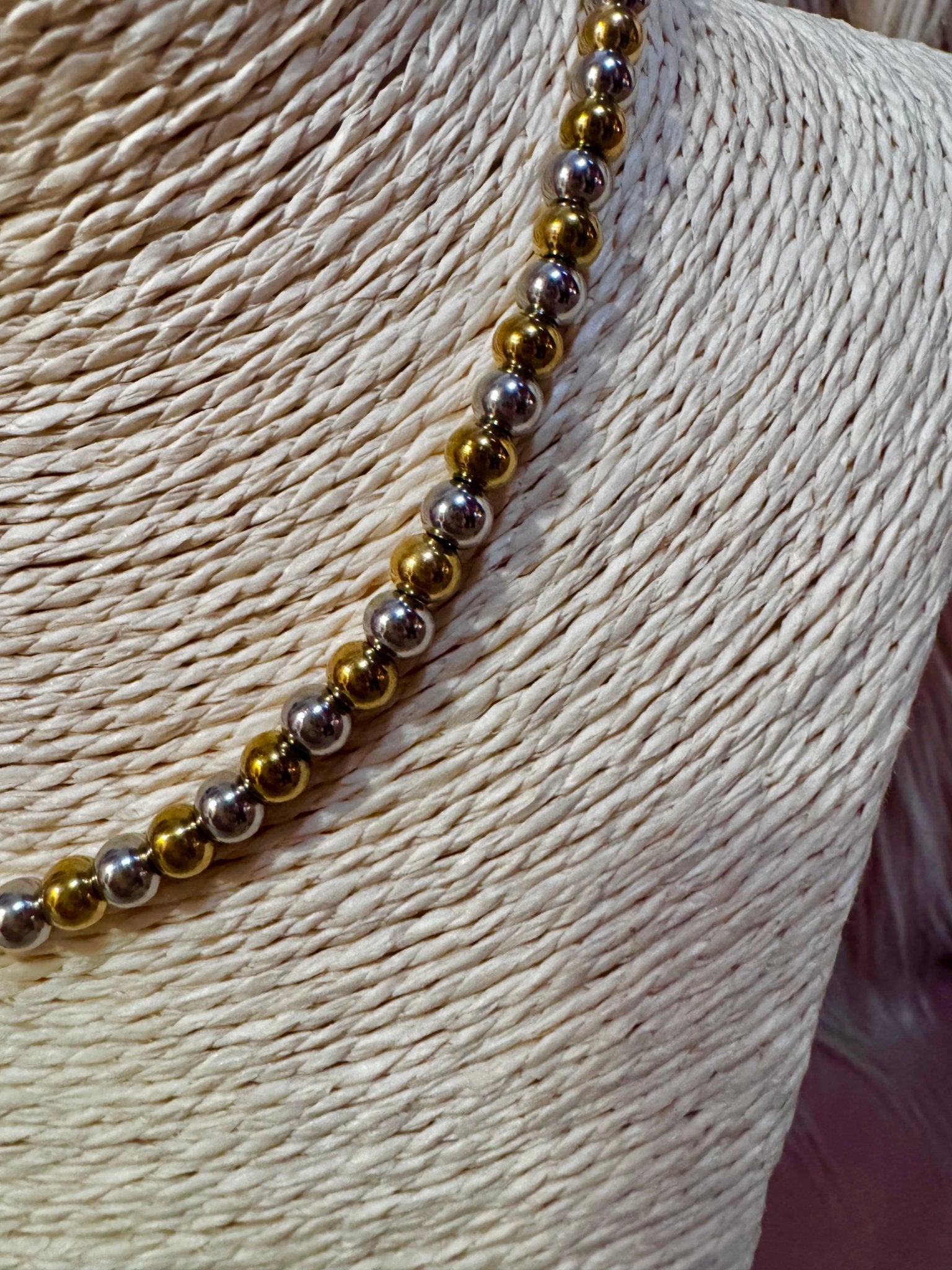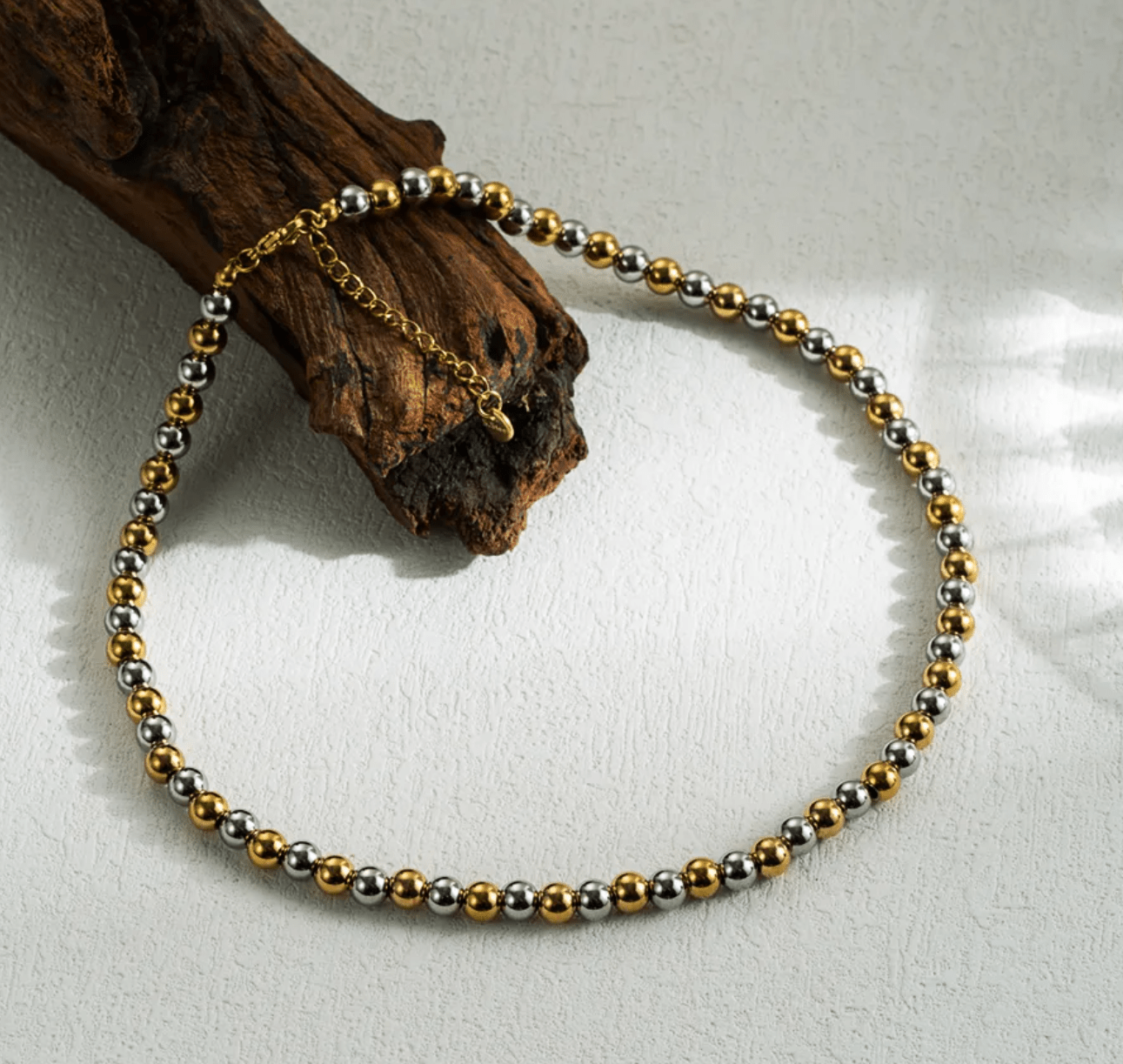 6MM 18K Gold dipped and Solid Stainless Steel Beaded Chain Necklace Tarnish-Free Waterproof