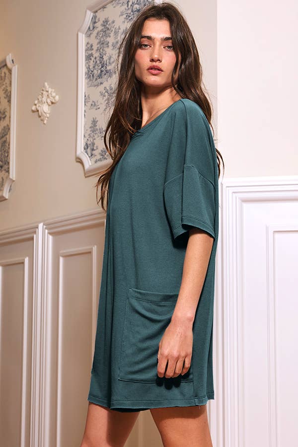 Teal Crew Neckline V-back Oversized Solid Jersey Romper