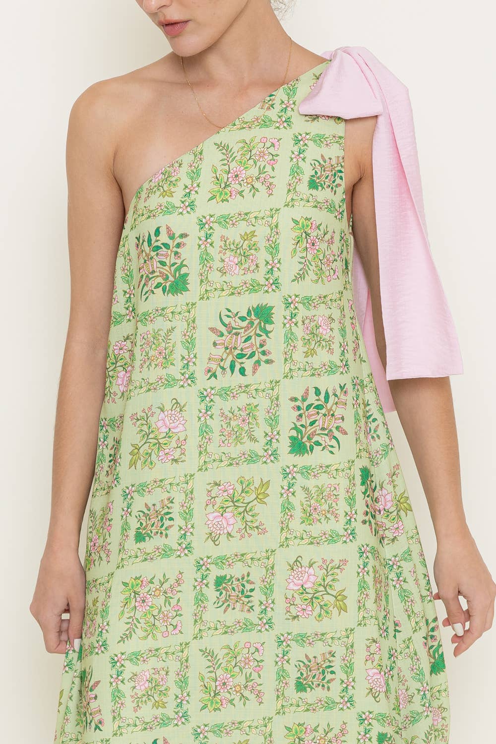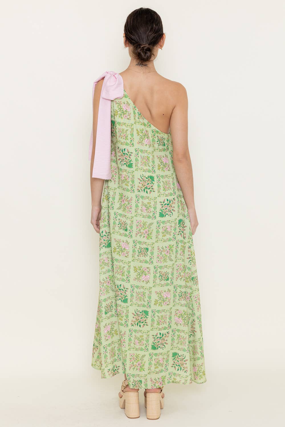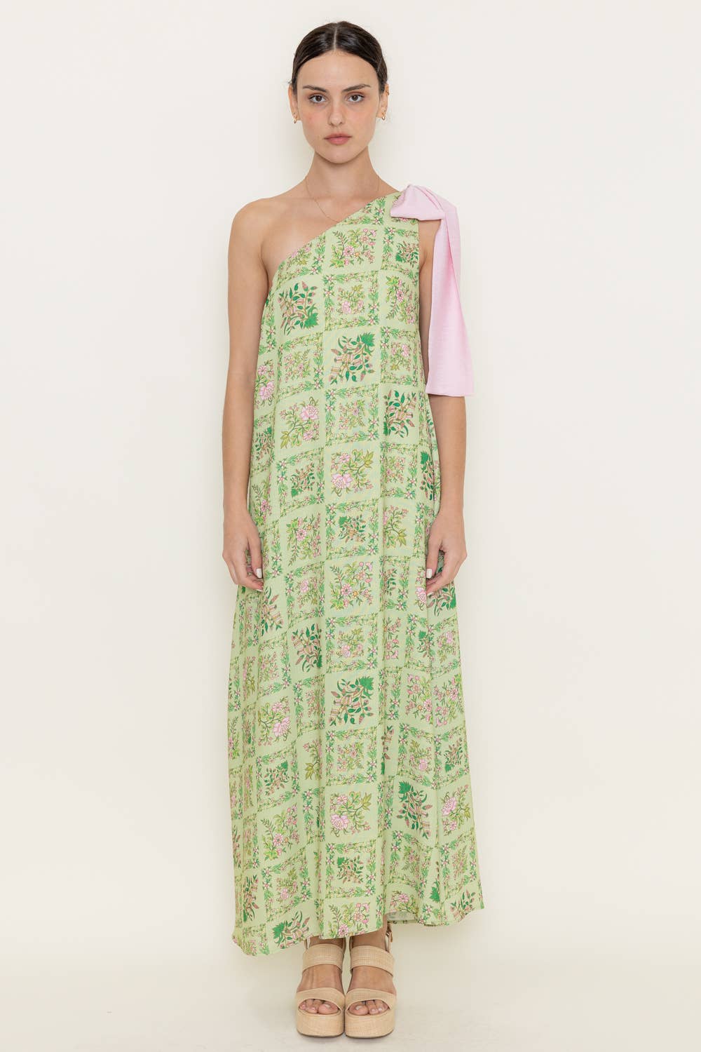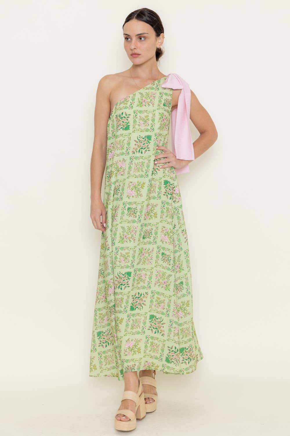 FLORAL PRINT SINGLE SHOULDER SLEEVELESS MAXI DRESS