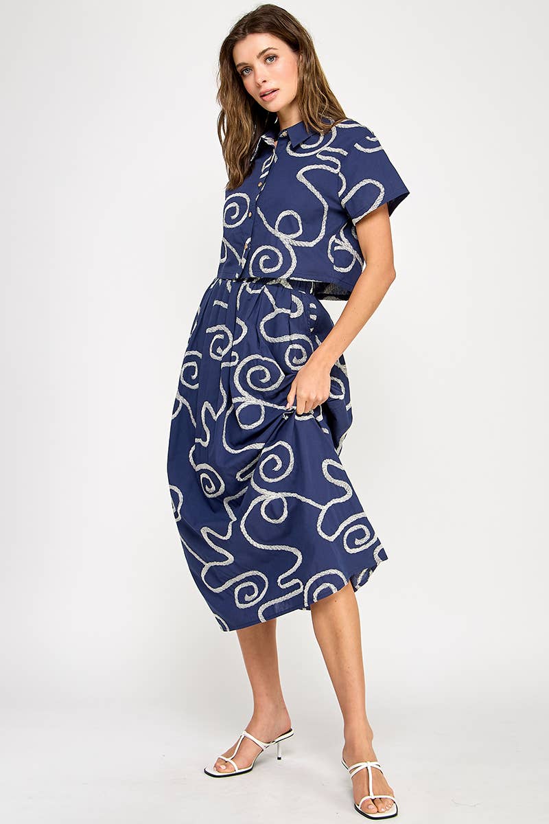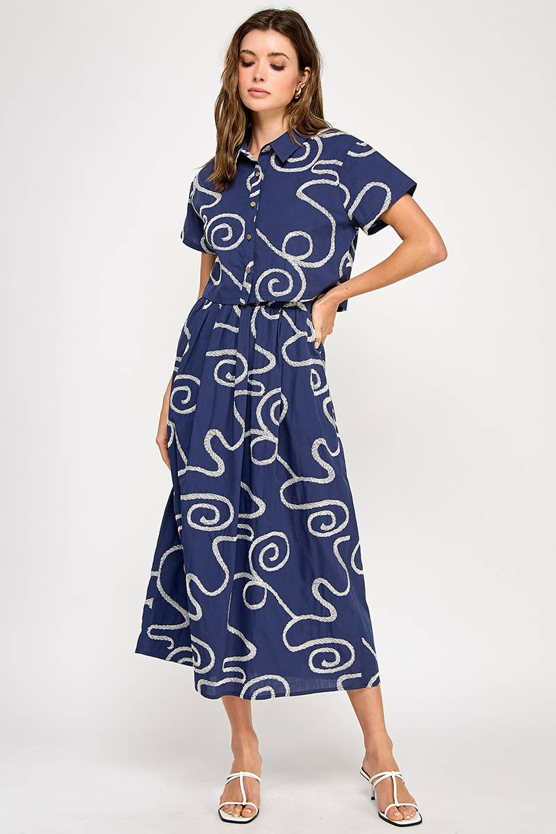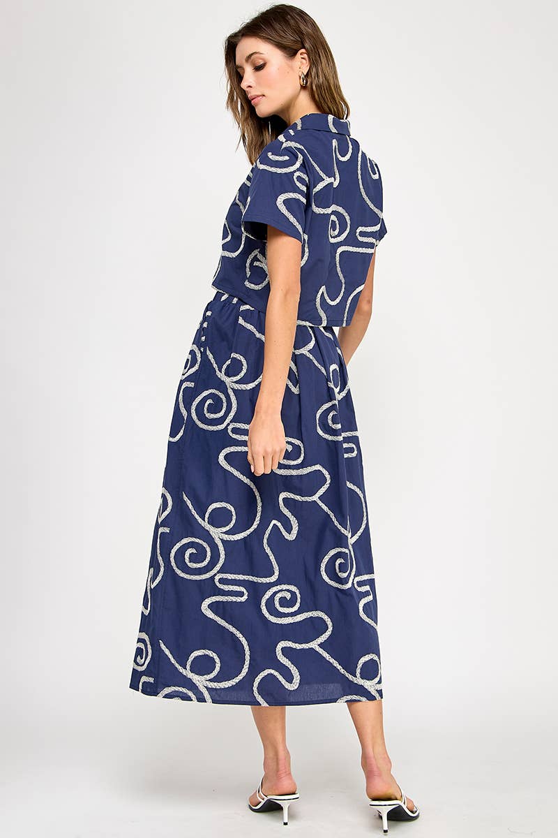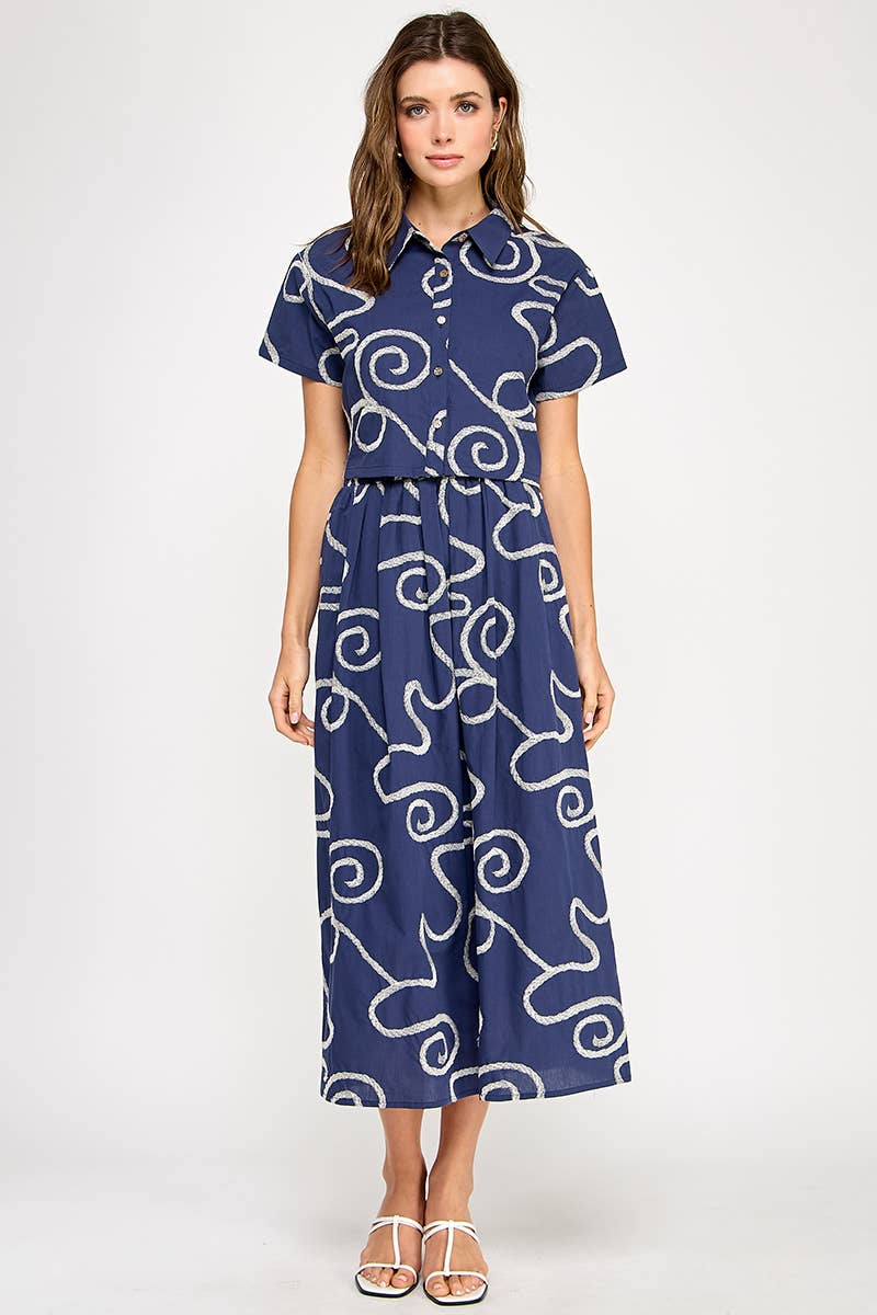 Embroidered Two Piece Matching Set, pockets, elastic waistband, cute fit.