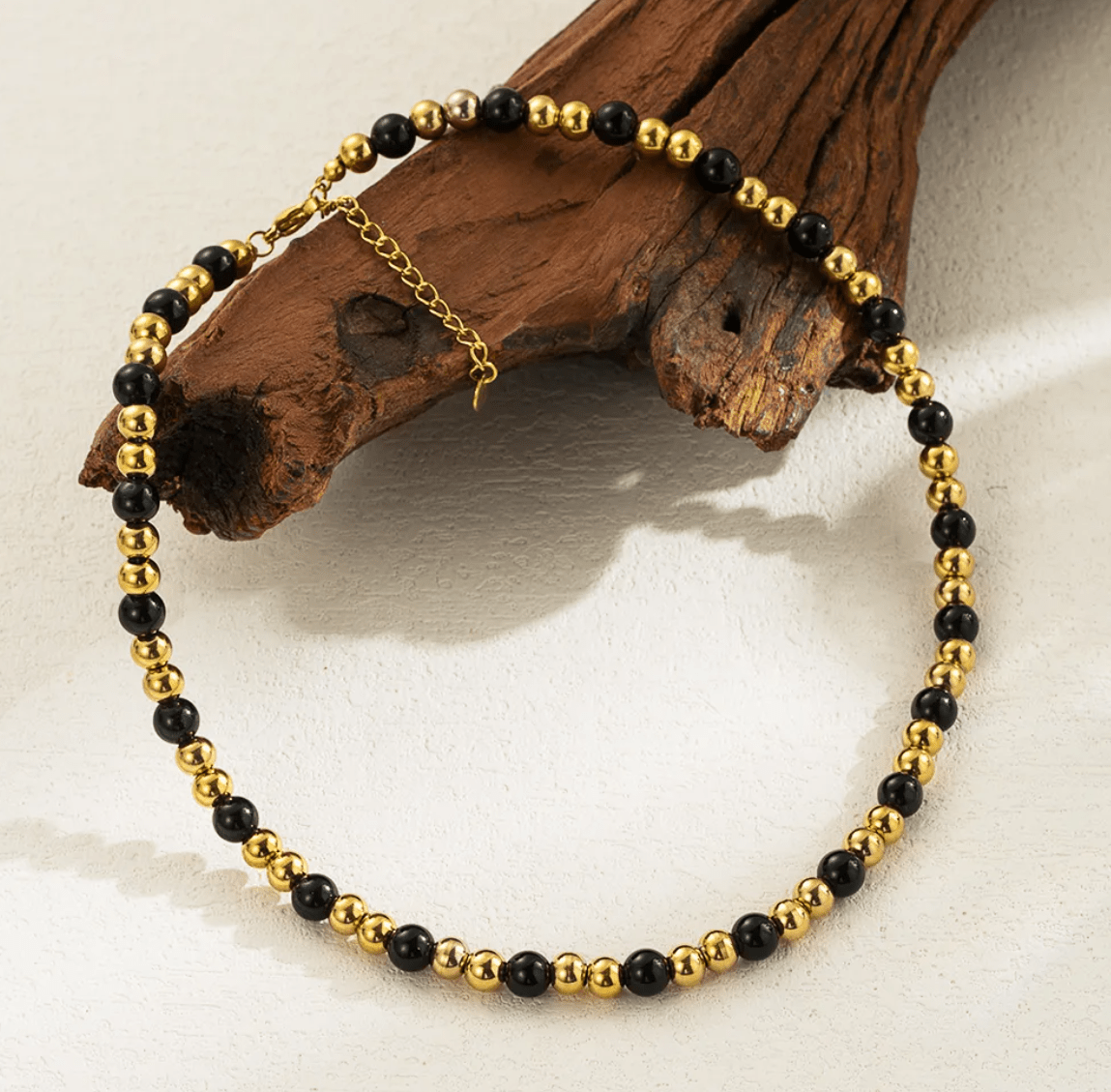 14k Gold-Filled 6MM Gold and Black Beaded Necklace