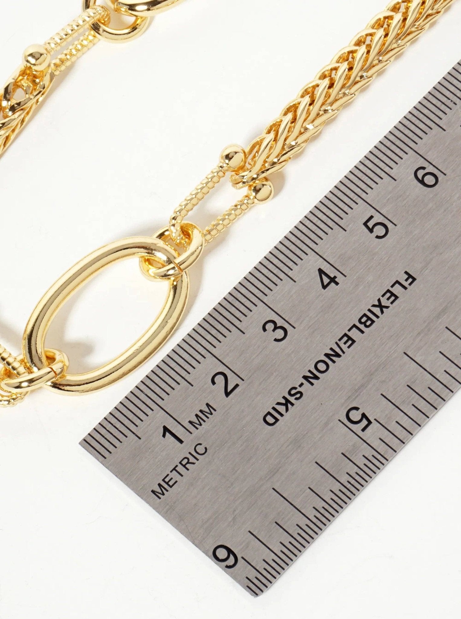 Three Oval-Shaped Accents 18K-Gold-Dipped 5mm Wheat-Chain Necklace