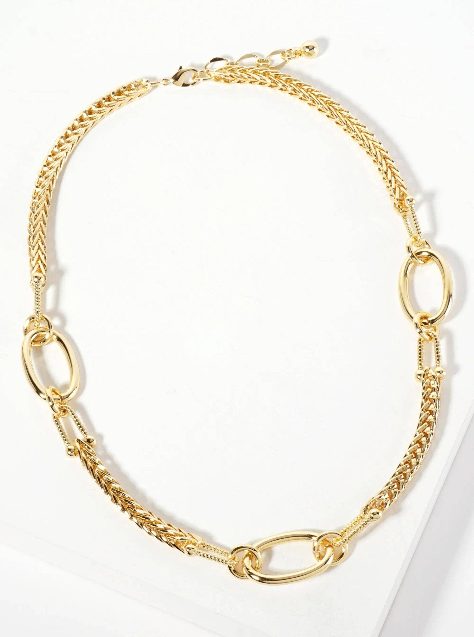 18K Gold-Dipped Oval Accents Wheat-Chain Necklace