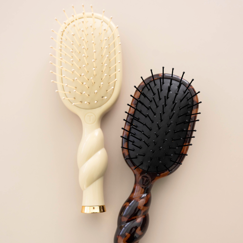 The Mini Detangler Hair Brush for Medium Hair in Tortoise is made for quick, gentle brushing anywhere. It glides through knots with less pulling and features a built-in mirror and storage, making it the perfect mini hair brush with mirror for on-the-go touch-ups.