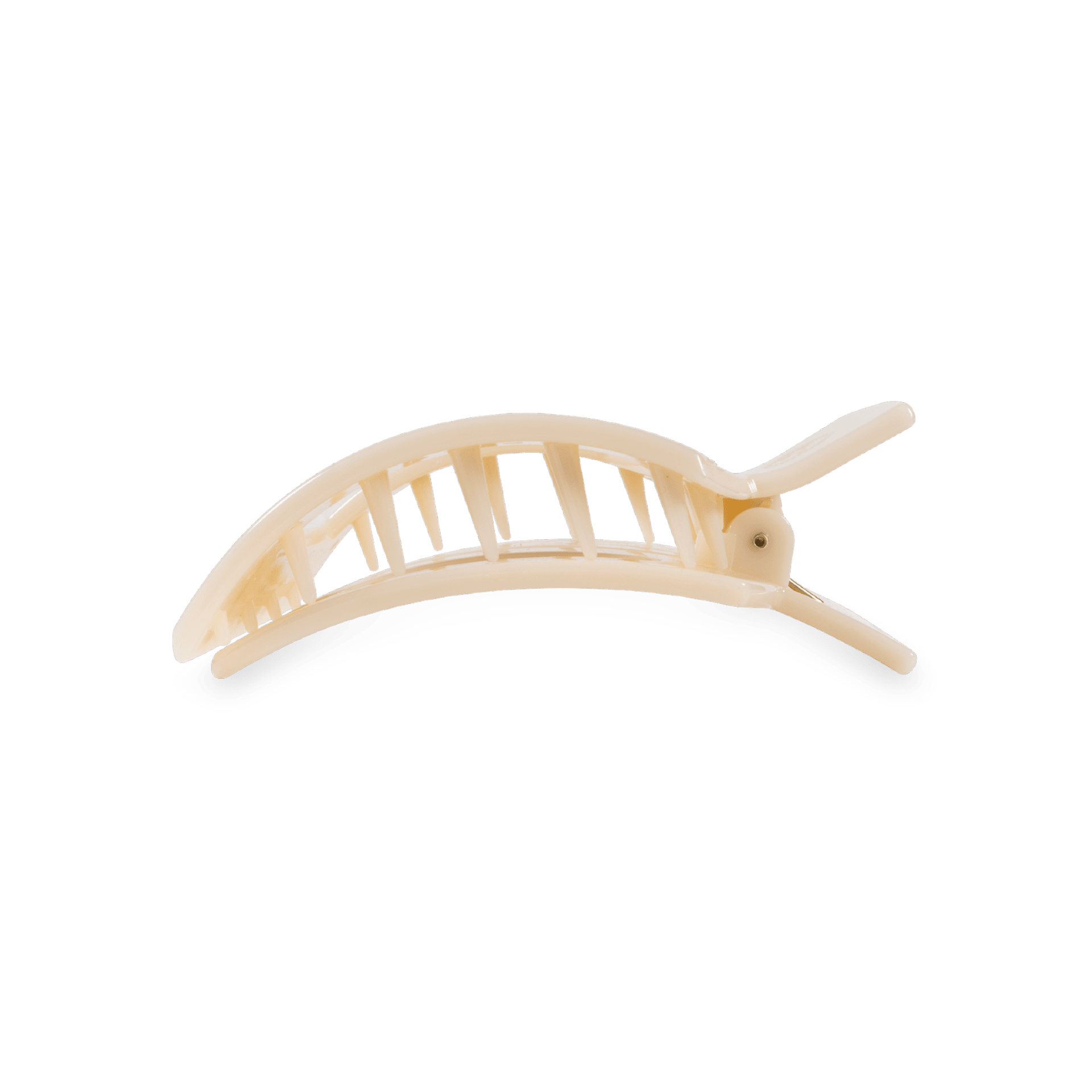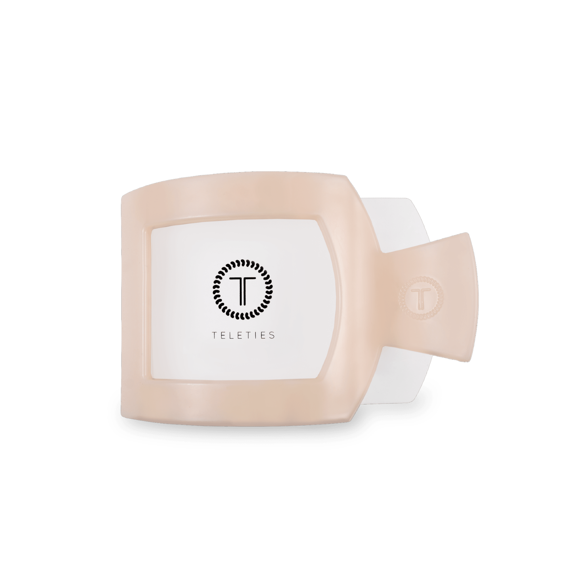 Lay flat and relax with the new TELETIES Almond Beige Large Flat Square Hair Clip in Beige. This hair clip is designed to allow you to lay back flat, do yoga, or sit comfortably in a seat with a headrest, and it is made with the same material that is nearly unbreakable. Lay down flat with comfort Bendable teeth for a secure yet gentle hold Lightweight, durable, and hair-friendly Perfect for all-day wear—from sunup to sundown The small size is suitable for thin to medium hair types, whether worn up or half-down. The small size is 3 inches long.