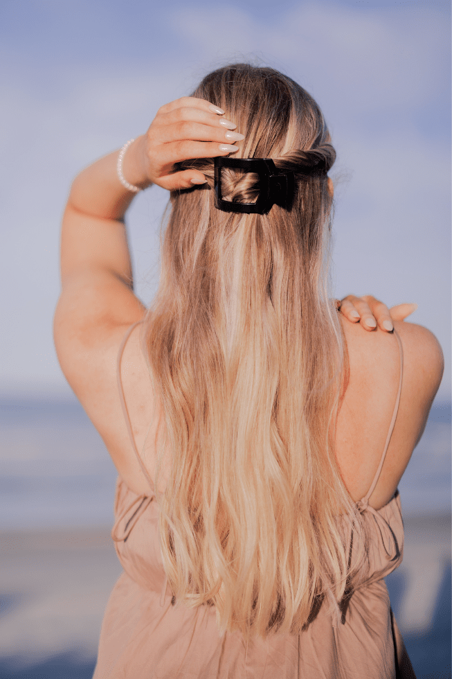 Lay flat and relax with the new TELETIES Jet Black Large Flat Square Hair Clip in Black. This hair clip is designed to allow you to lay back flat, do yoga, or sit comfortably in a seat with a headrest, and it is made with the same material that is nearly unbreakable. Lay down flat with comfort Bendable teeth for a secure yet gentle hold Lightweight, durable, and hair-friendly Perfect for all-day wear—from sunup to sundown The large size is great for thick hair. The small size is suitable for thin to medium hair types, whether worn up or half-down. The small size is 3 inches long.