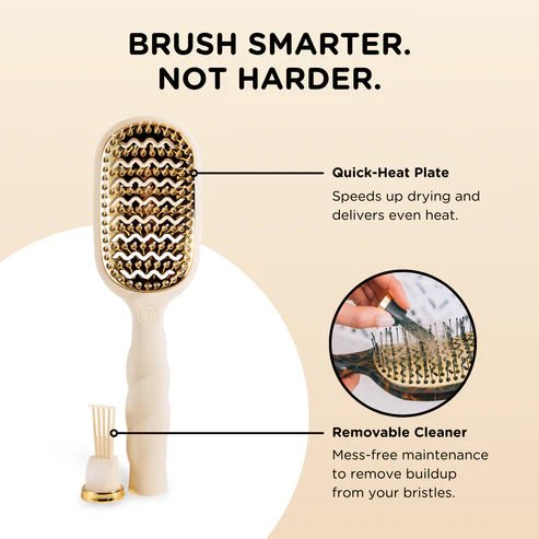 The Vented Brush in Tan is your new secret to faster, smoother blowouts. Pairing a Quick-Heat Aluminum Plate that heats up in seconds and distributes heat evenly with a vented design to enhance air flow, this vent brush works perfectly with your blow dryer to cut down on styling time without cutting corners on results.