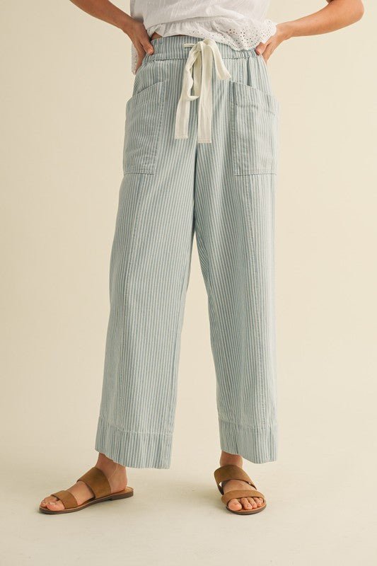 Light Blue and White Wide Legged Crop Drawstring Pants