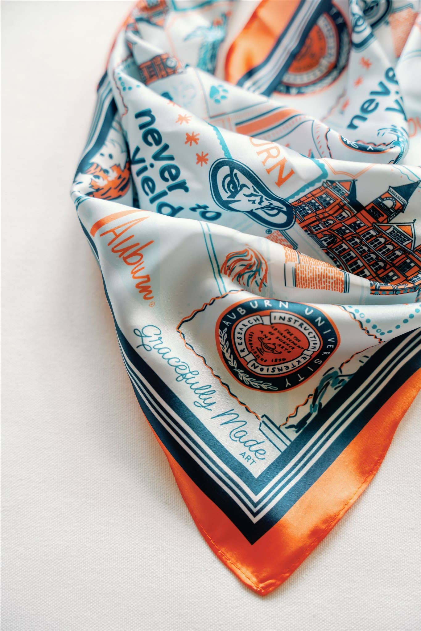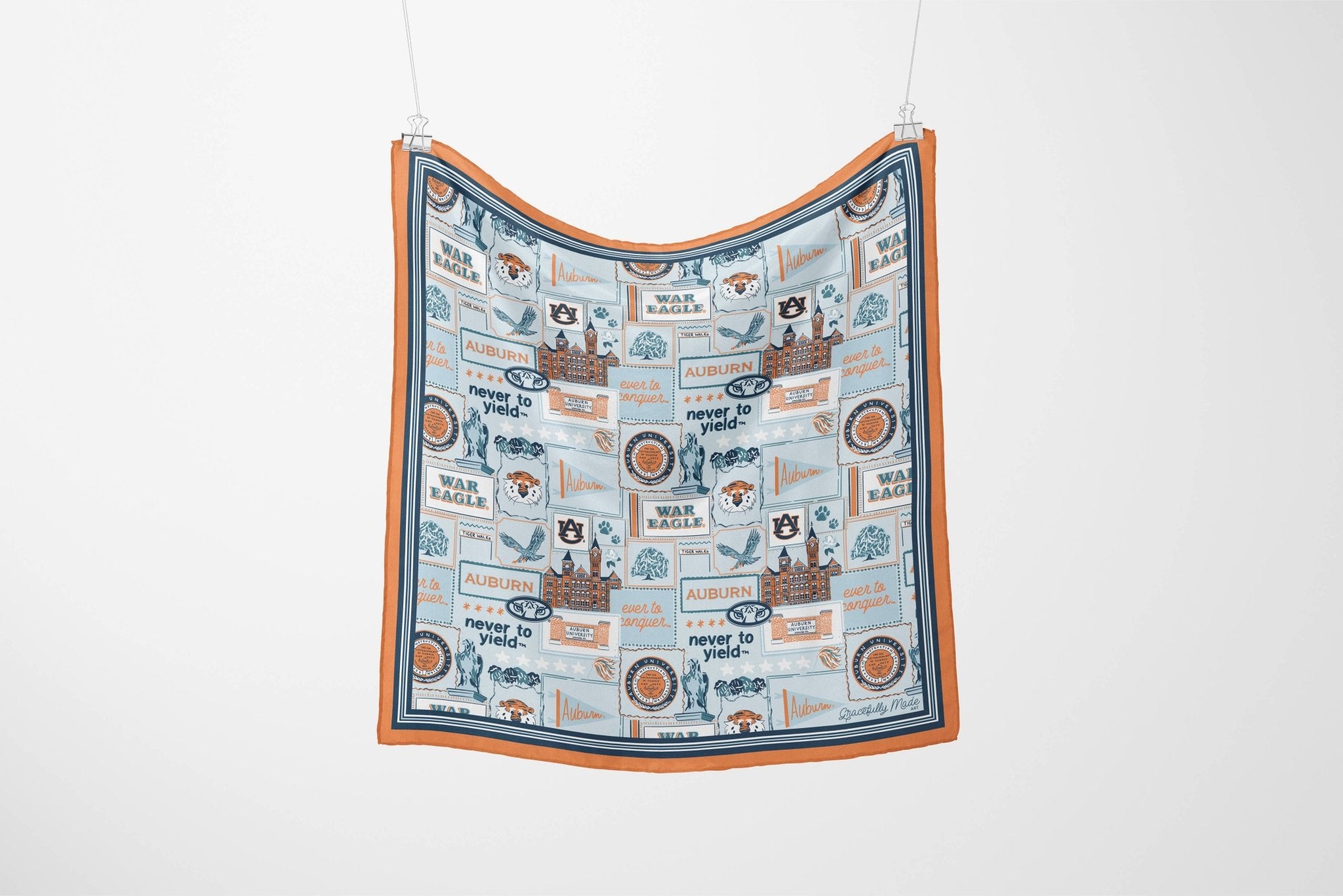 Add a touch of Auburn spirit to any outfit with our hand-illustrated silk scarf! Whether you tie it in your hair to elevate your game day look, wrap it around your neck, or add it to your purse for a pop of color, this versatile accessory is the perfect.