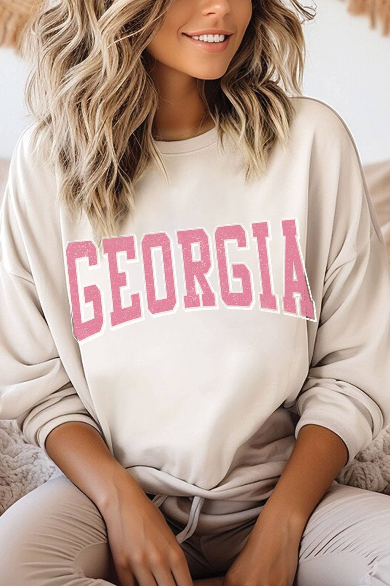 GEORGIA PINK GRAPHIC BRUSHED SWEATSHIRTS