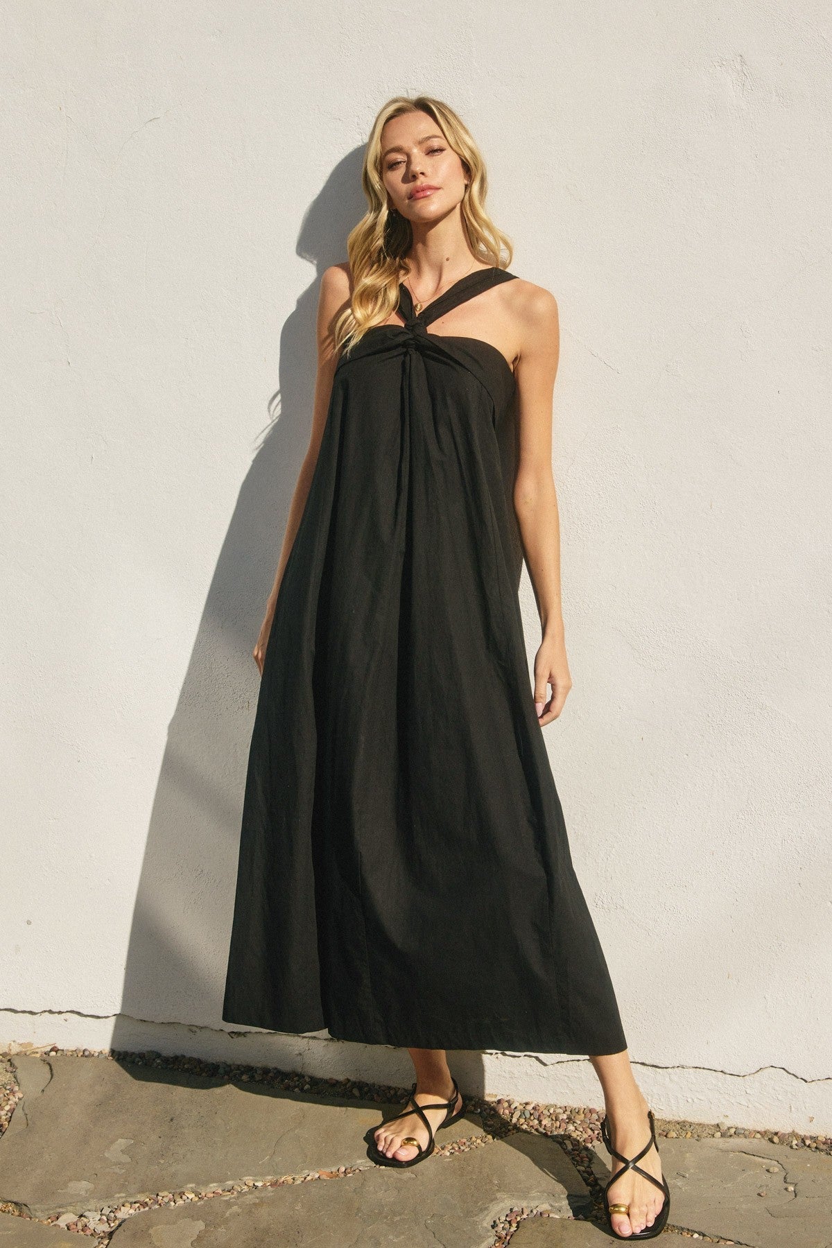 Black Cotton maxi dress with a halter neck.