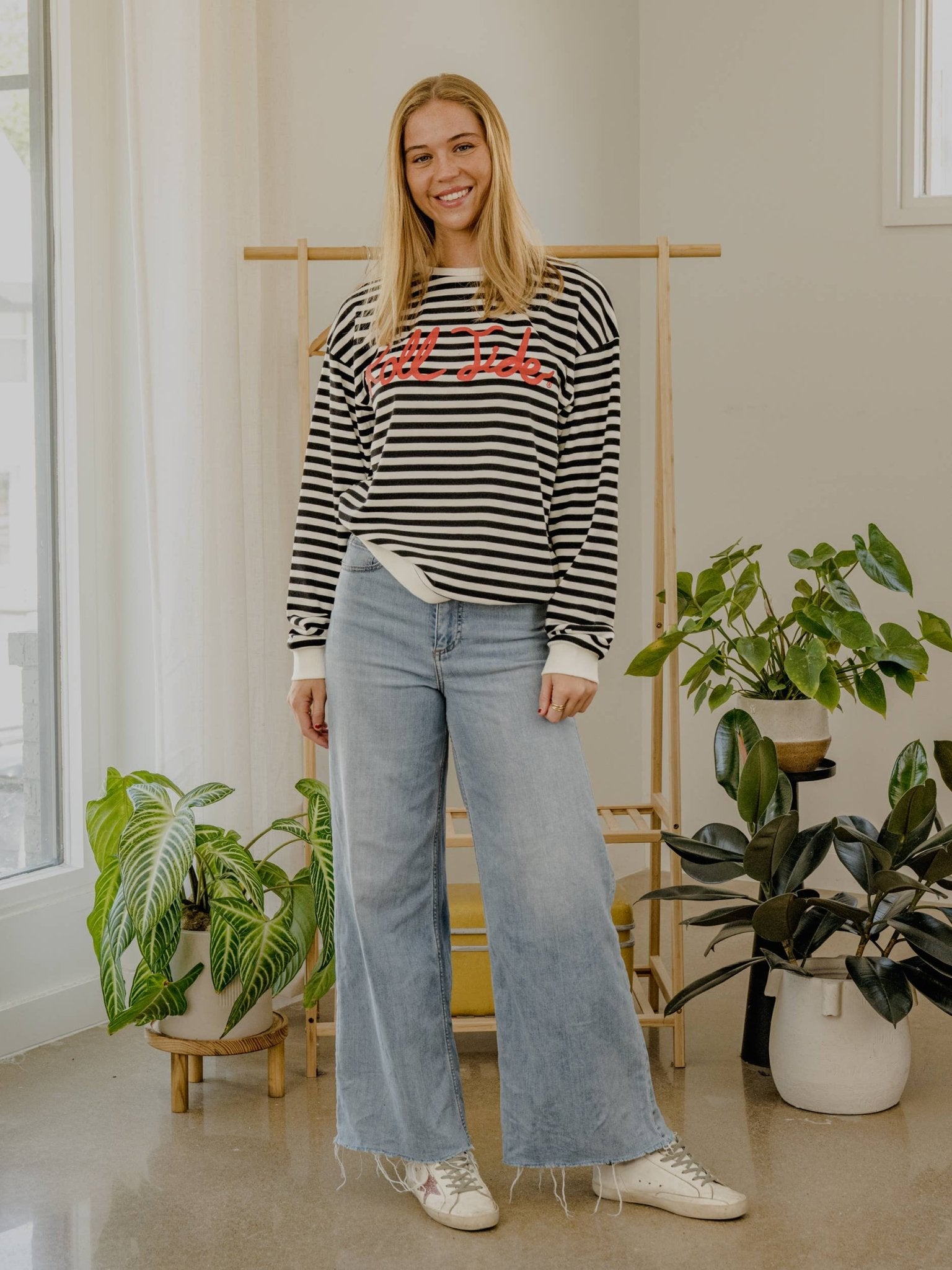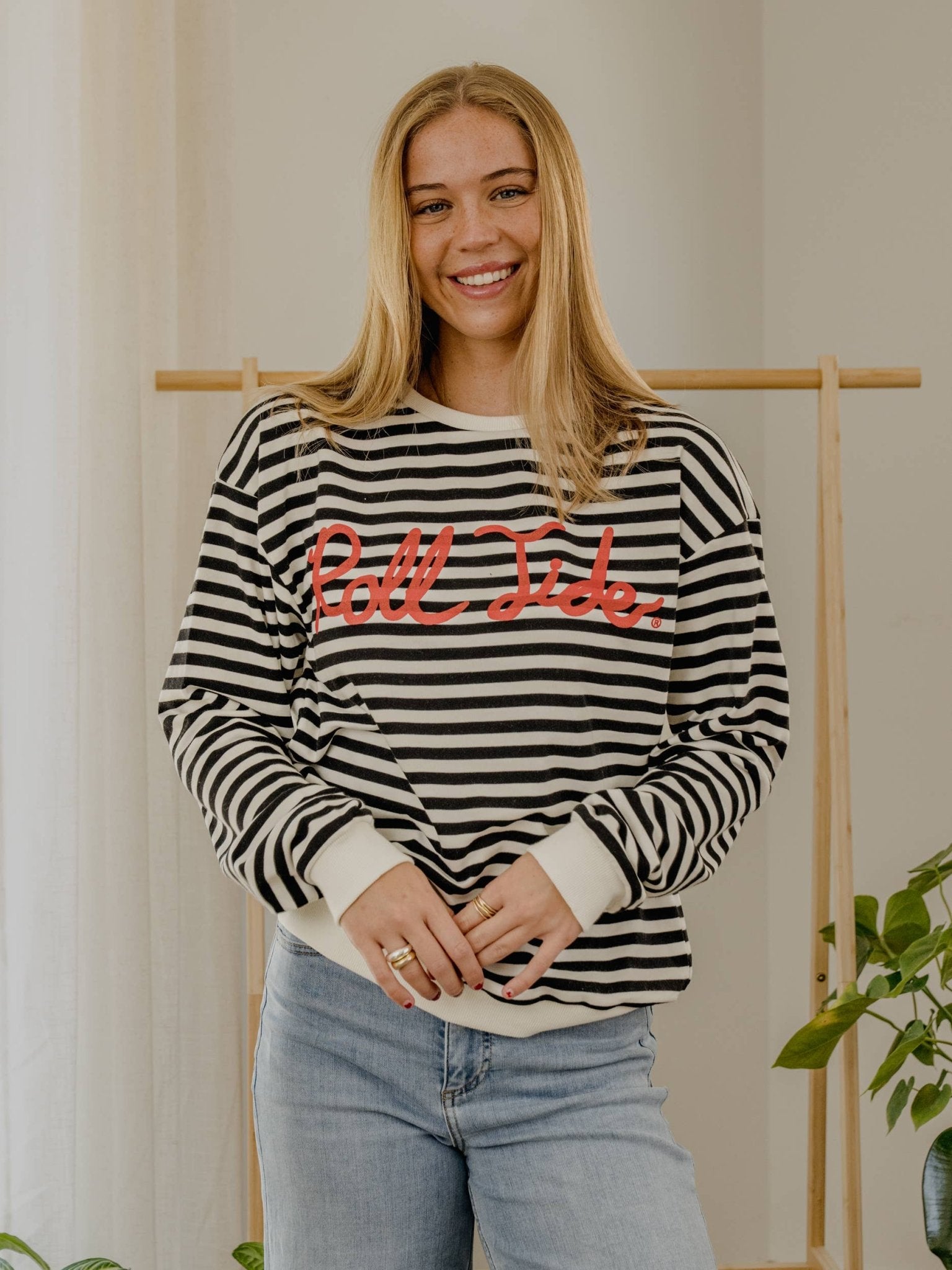 Livy Lu - Bama Roll Tide Simple Script BK/WT Stripe Hi-Dive Sweatshirt Pullover