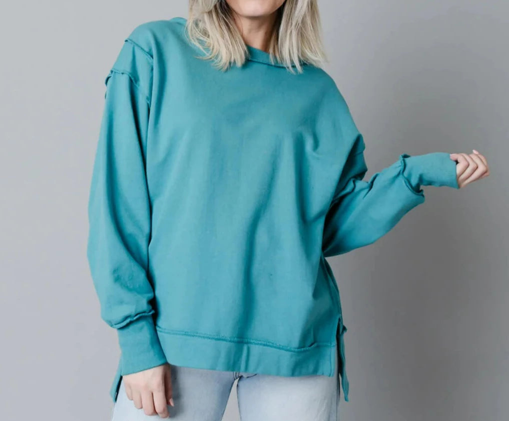 MINT AND TAUPE PUFF SLEEVE OMBRE SWEATER TOP