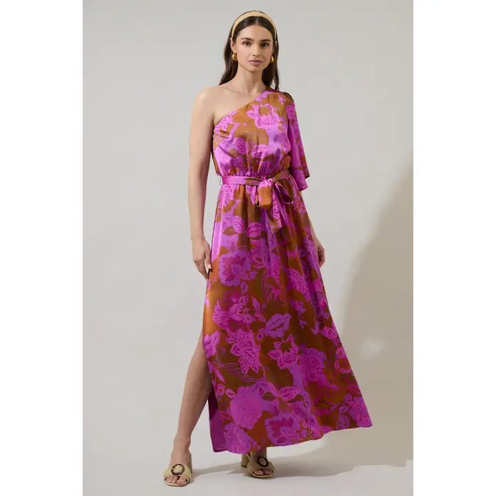 Lorian Floral Meara One Shoulder Satin Maxi Dress