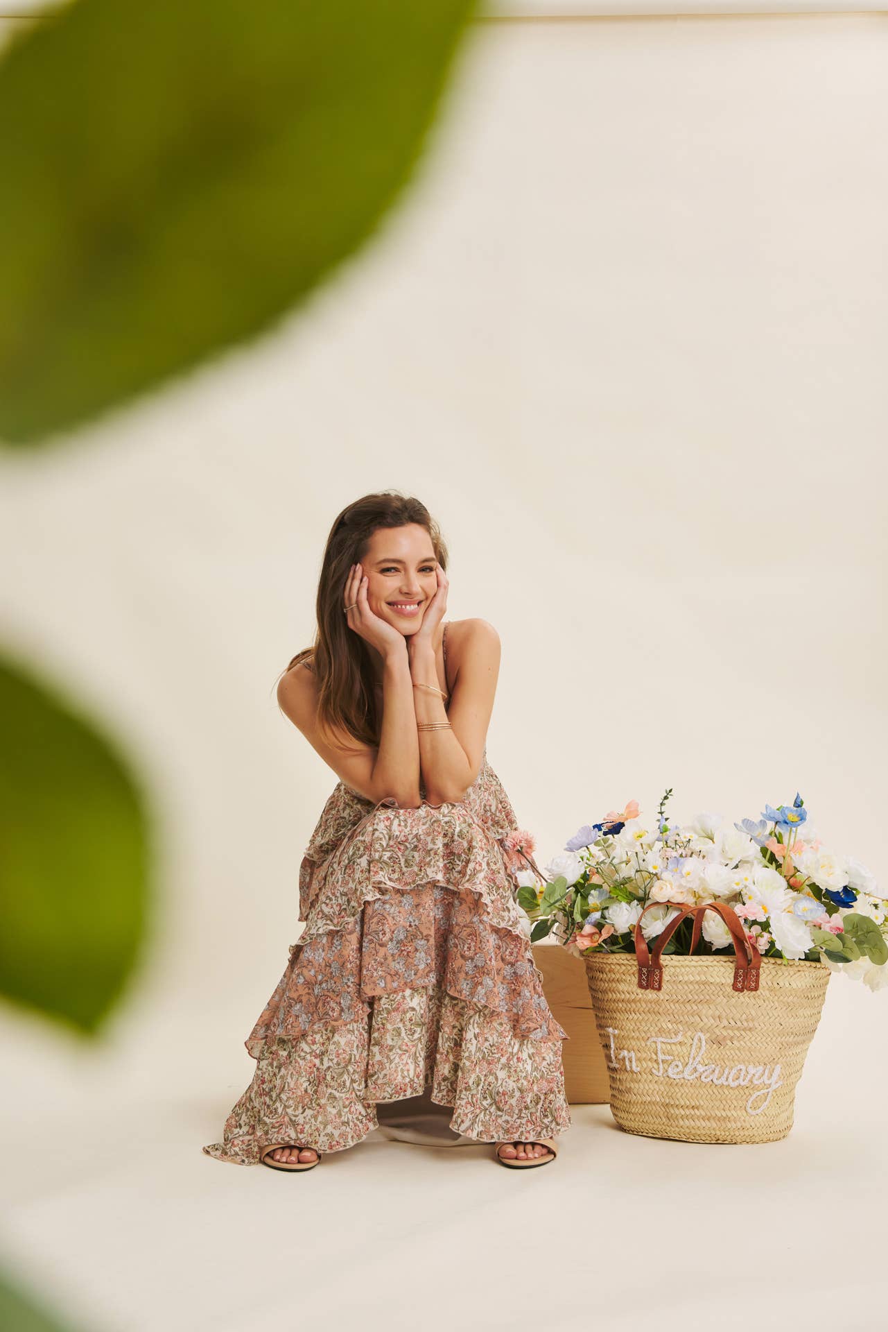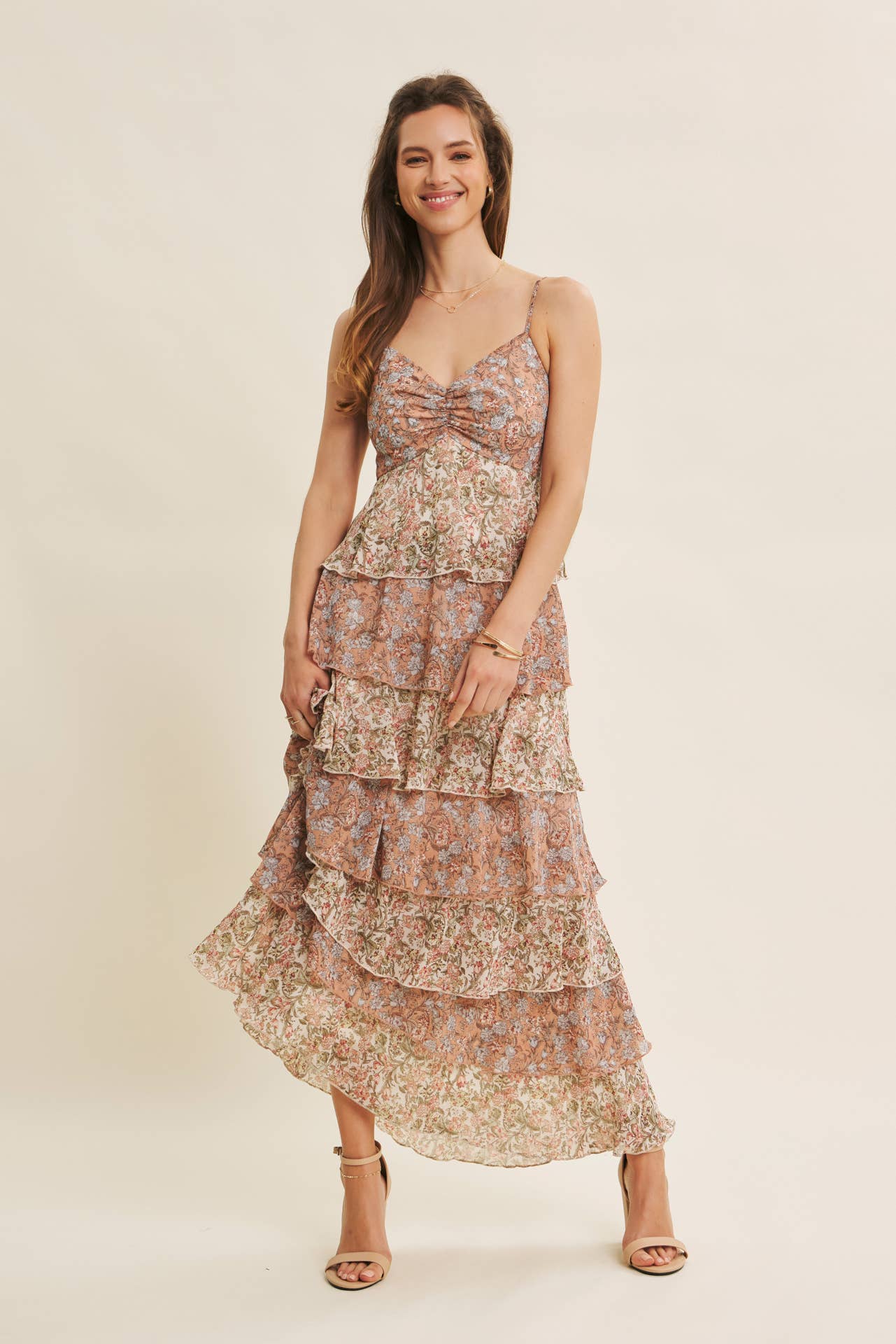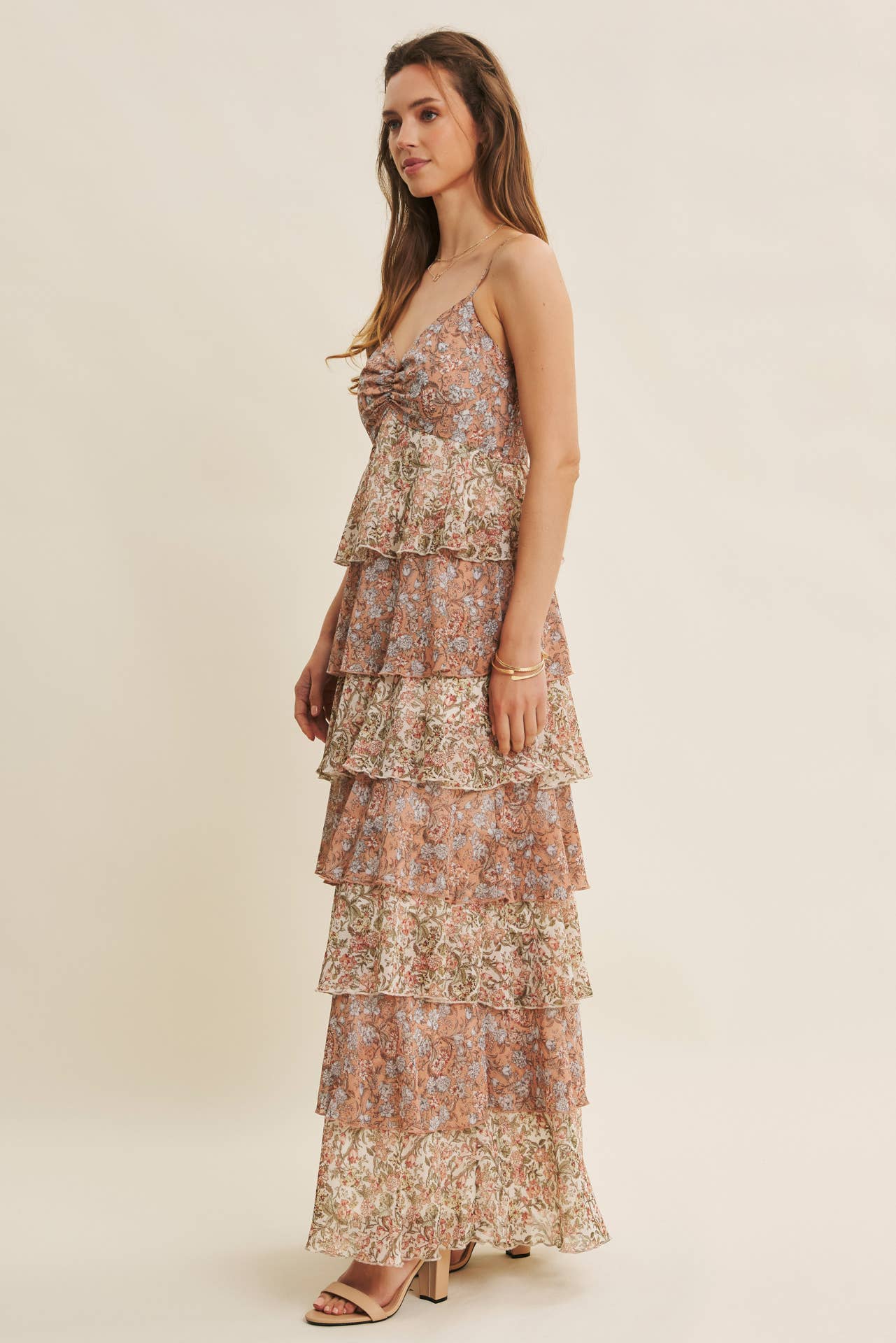 ROMANTIC FLORAL TIERED RUFFLE MAXI DRESS WITH SMOCKED BACK