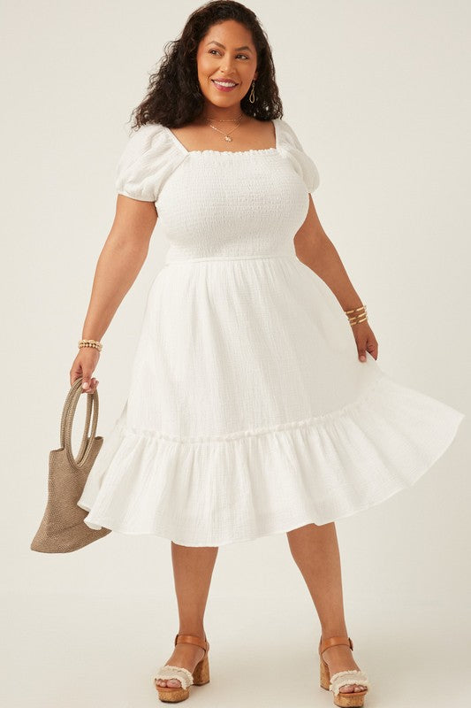 Ivory White Metallic Ruffle Short Sleeve Dress