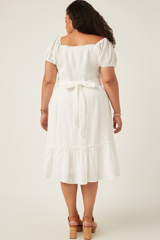 PLUS White EYELET LACE MIX MEDIA MINI DRESS