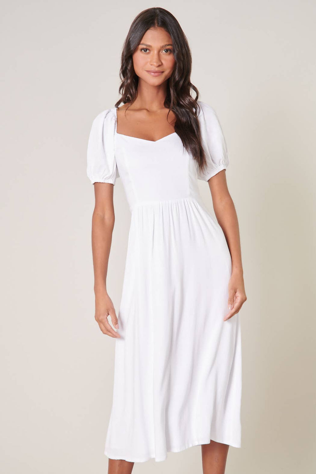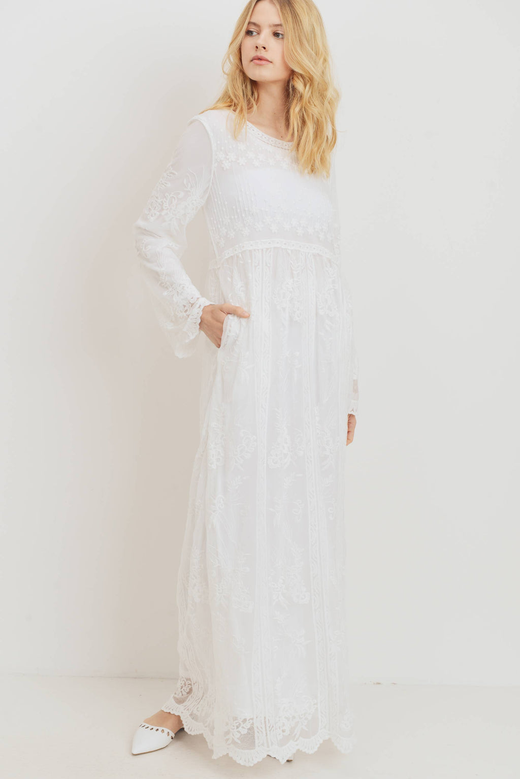WHITE SWEETHEART NECK LACE DRESS WITH RUFFLED SKIRT