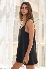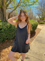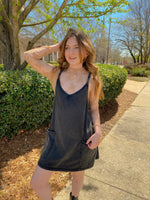 Black Mineral Washed Sporty Mini Dress W Built in Suppert Lining