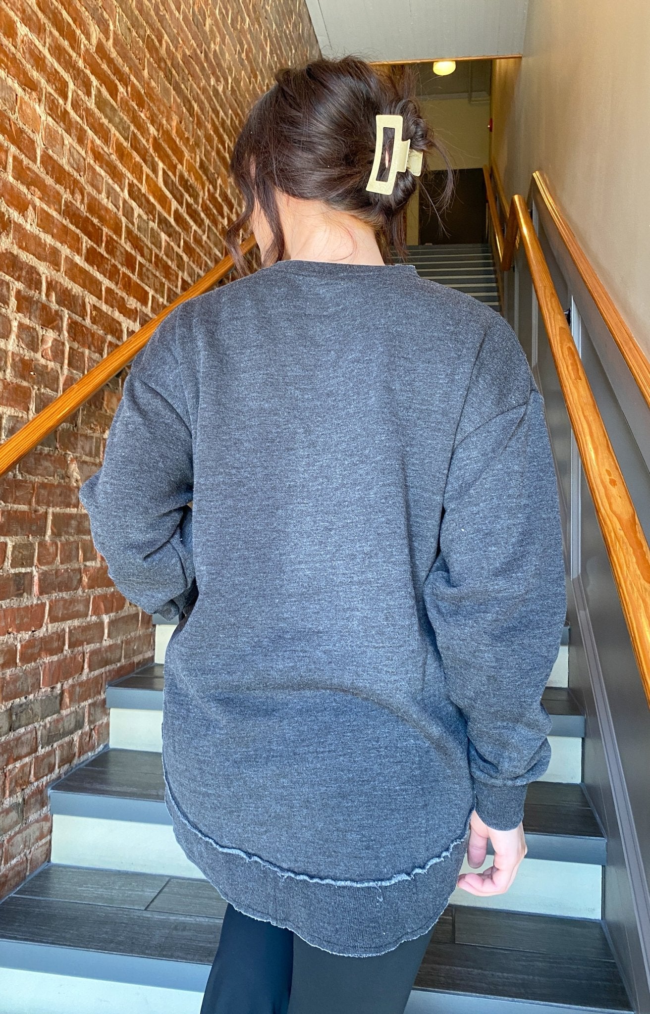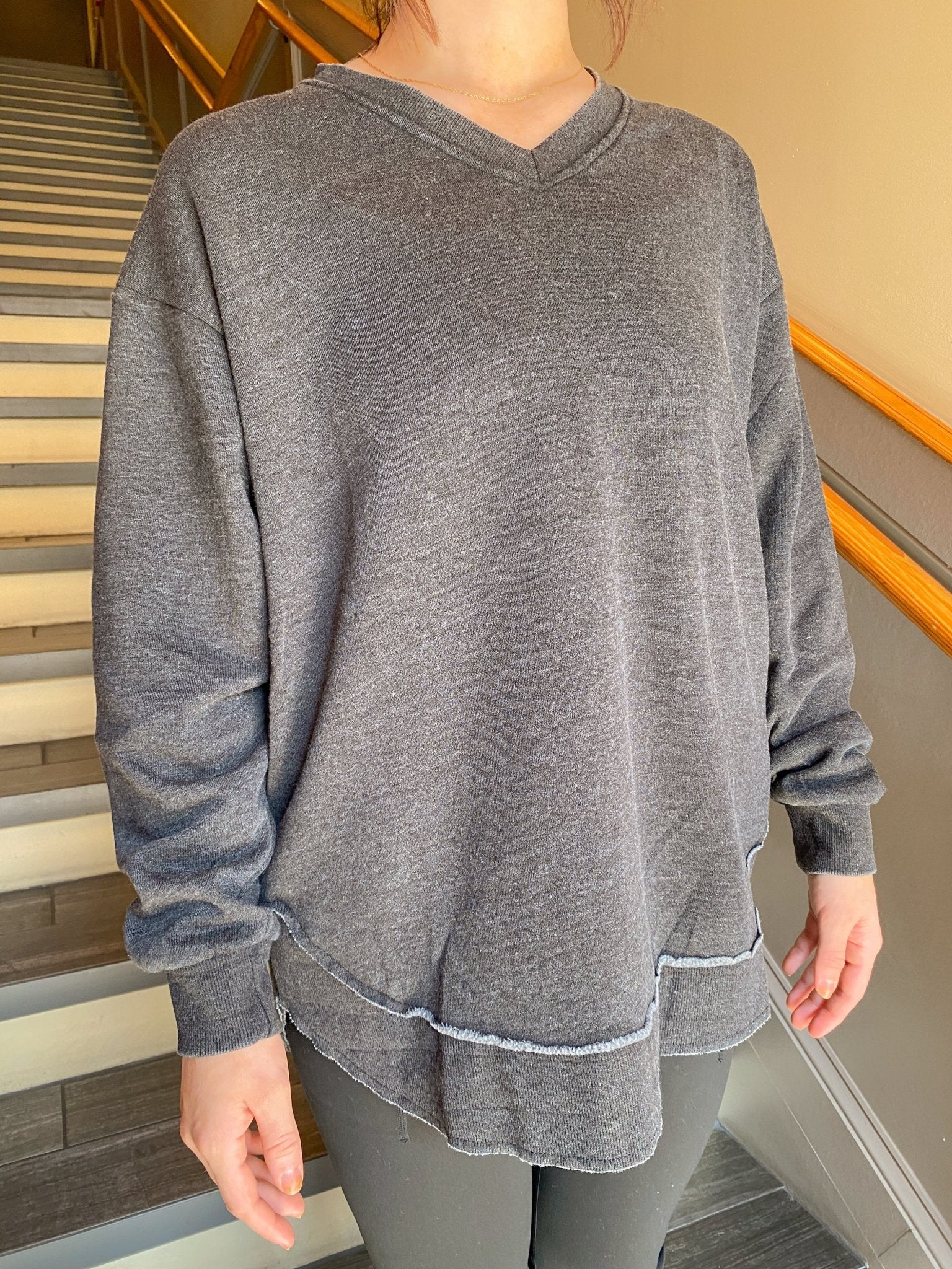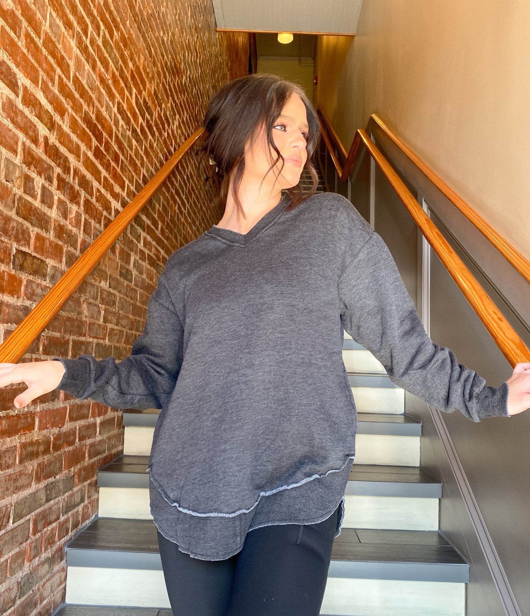 HARPER CHARCOAL V-NECK PULLOVER SWEATSHIRT WITH POCKETS