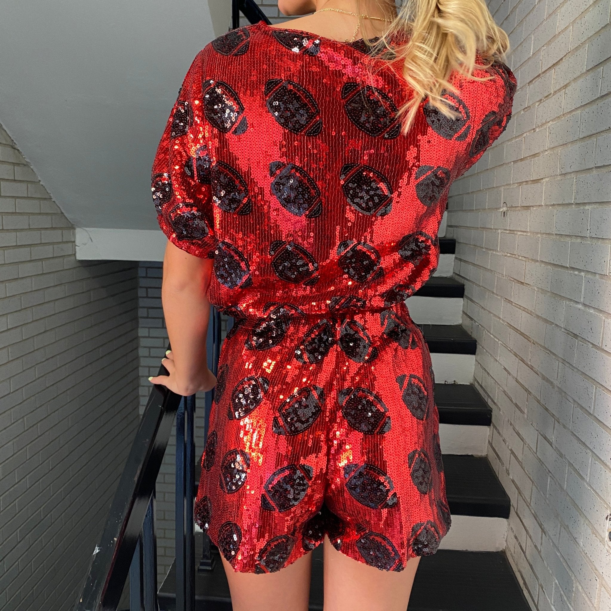 RED AND BLACK FOOTBALL SEQUIN CROP TOP