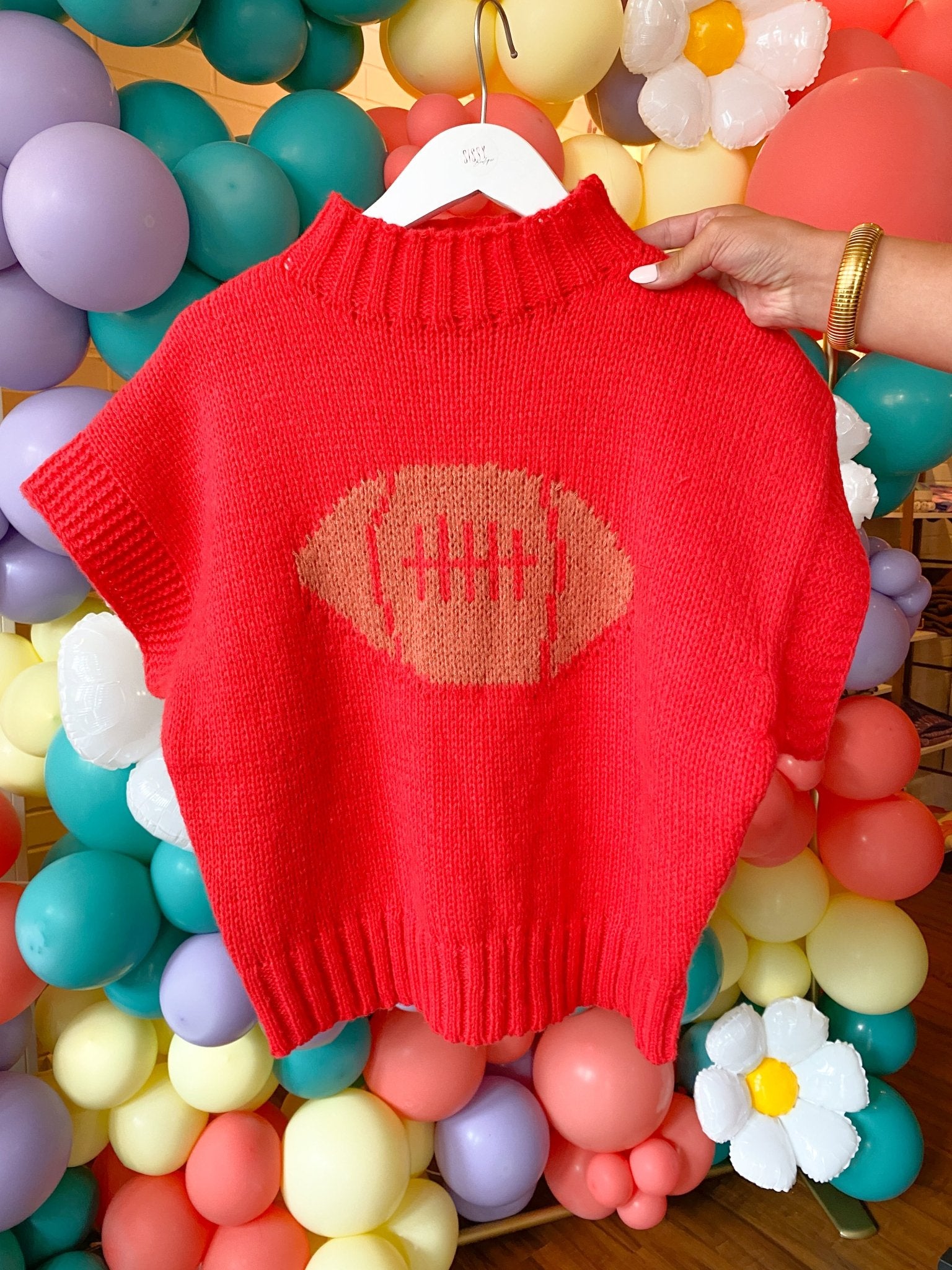 This Red ?? Football ??Turtle Neck Short Sleeve Sweater is ideal for game day, providing both style and comfort.