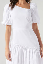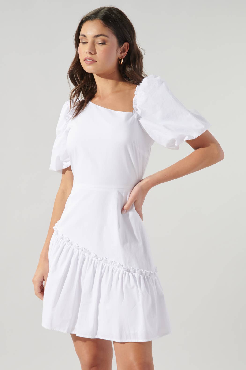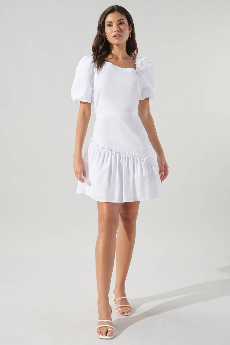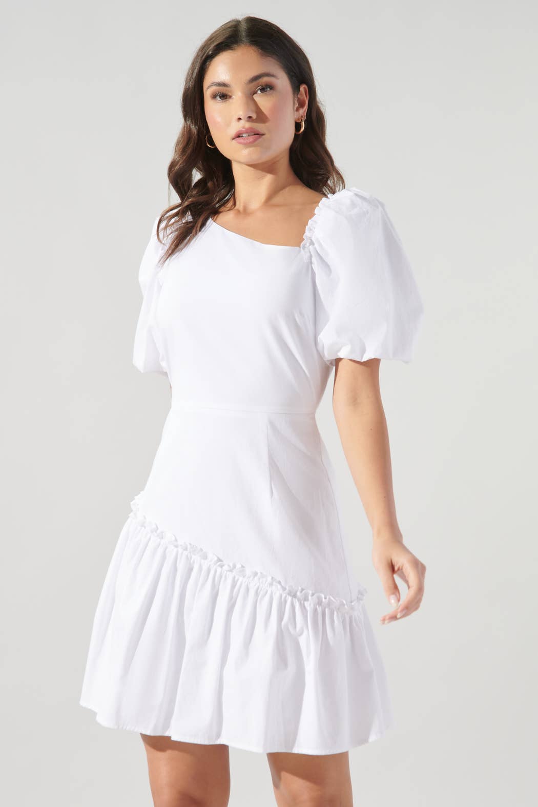 A unique twist on a timeless mini dress. The Shape of You Mini Dress features classic puff sleeves that adds major volume to a shift silhouette. They frame an asymmetrical neckline that starts high on the shoulder and sweeps across the chest.