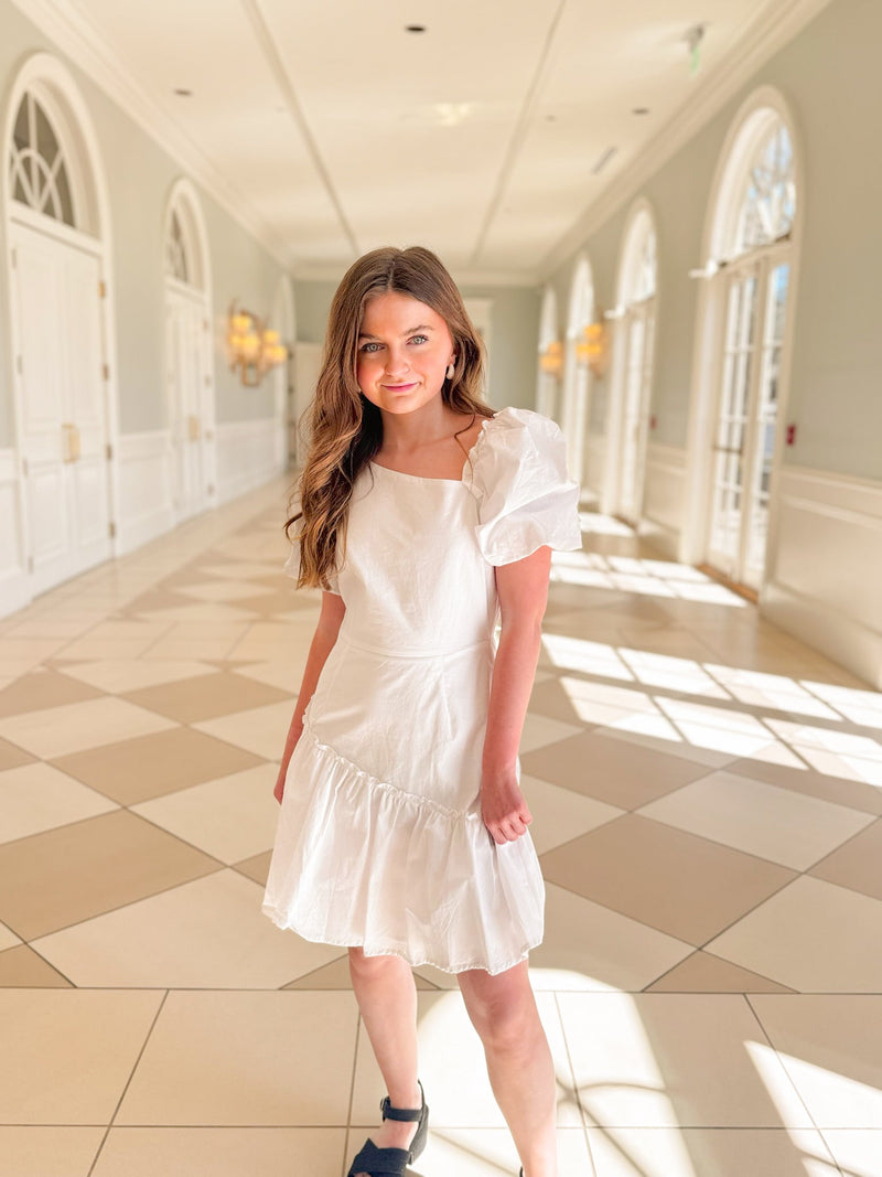 SHAPE OF YOU ASYMMETRICAL POPLIN WHITE MINI DRESS
