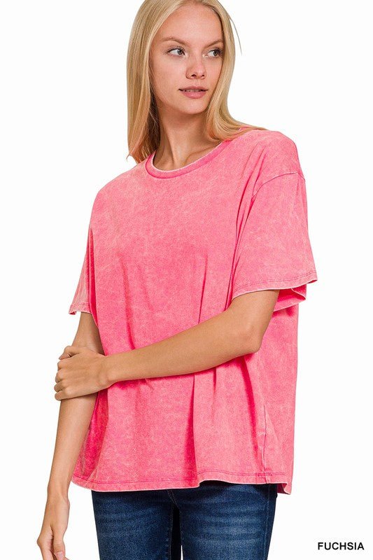 Acid Washed Short Sleeve Top (in Multiple Colors)